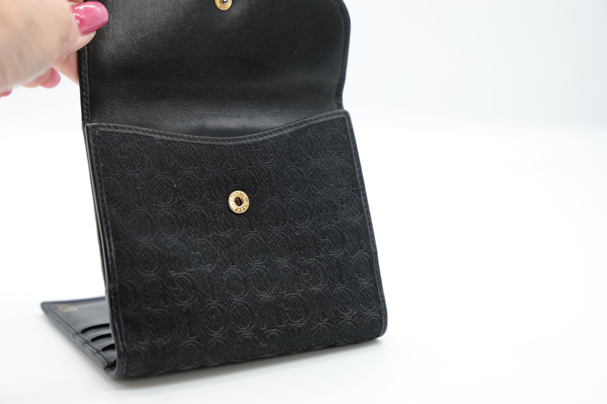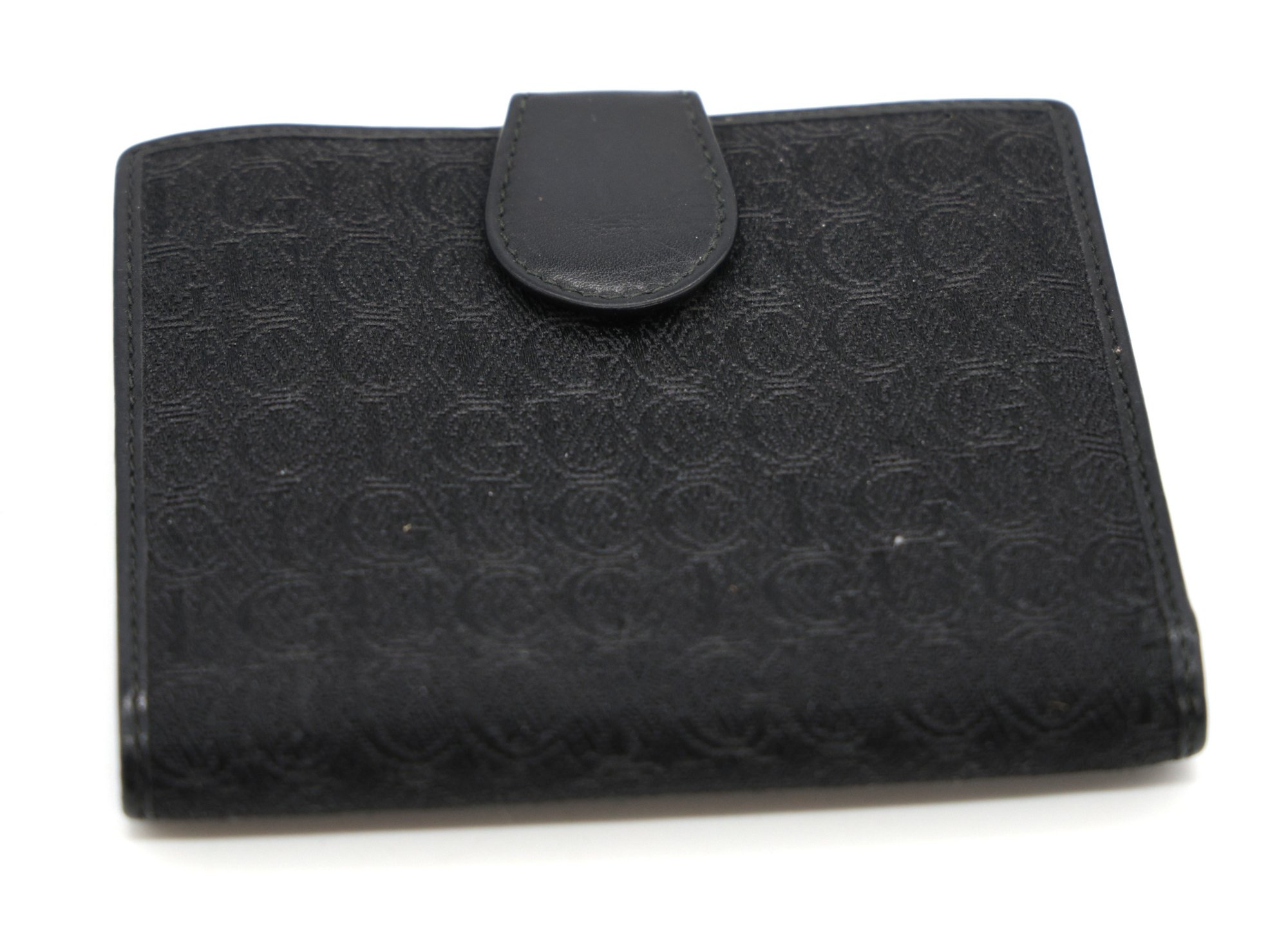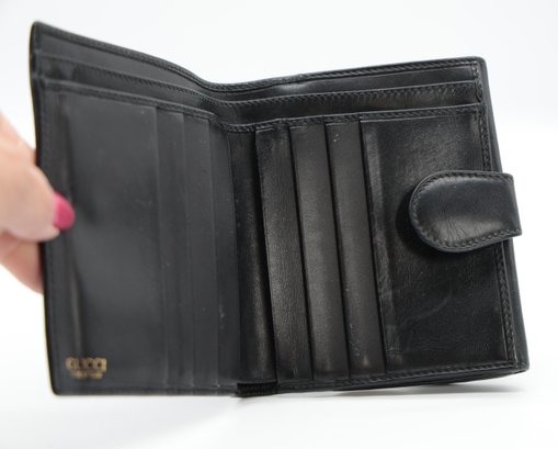 Vintage Authentic GUCCI Wallet With "GG" Monogram , canvas outside, soft leather inside. Coin compartment. , 2 parts for paper money and eight compartments for cards.