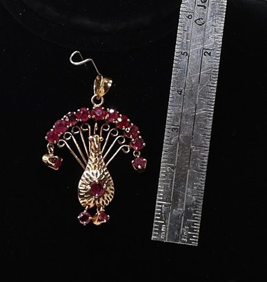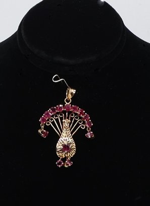14kt Beautiful ruby cluster peacock pendant - 1.25"L x 1" W