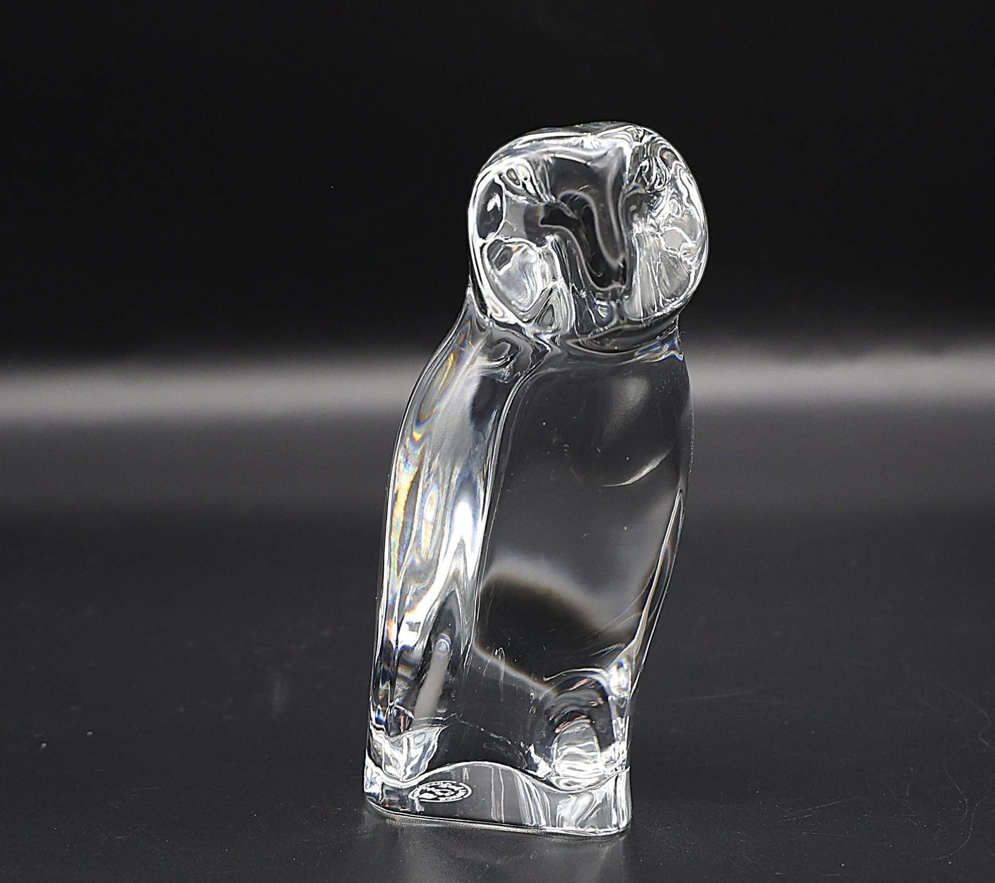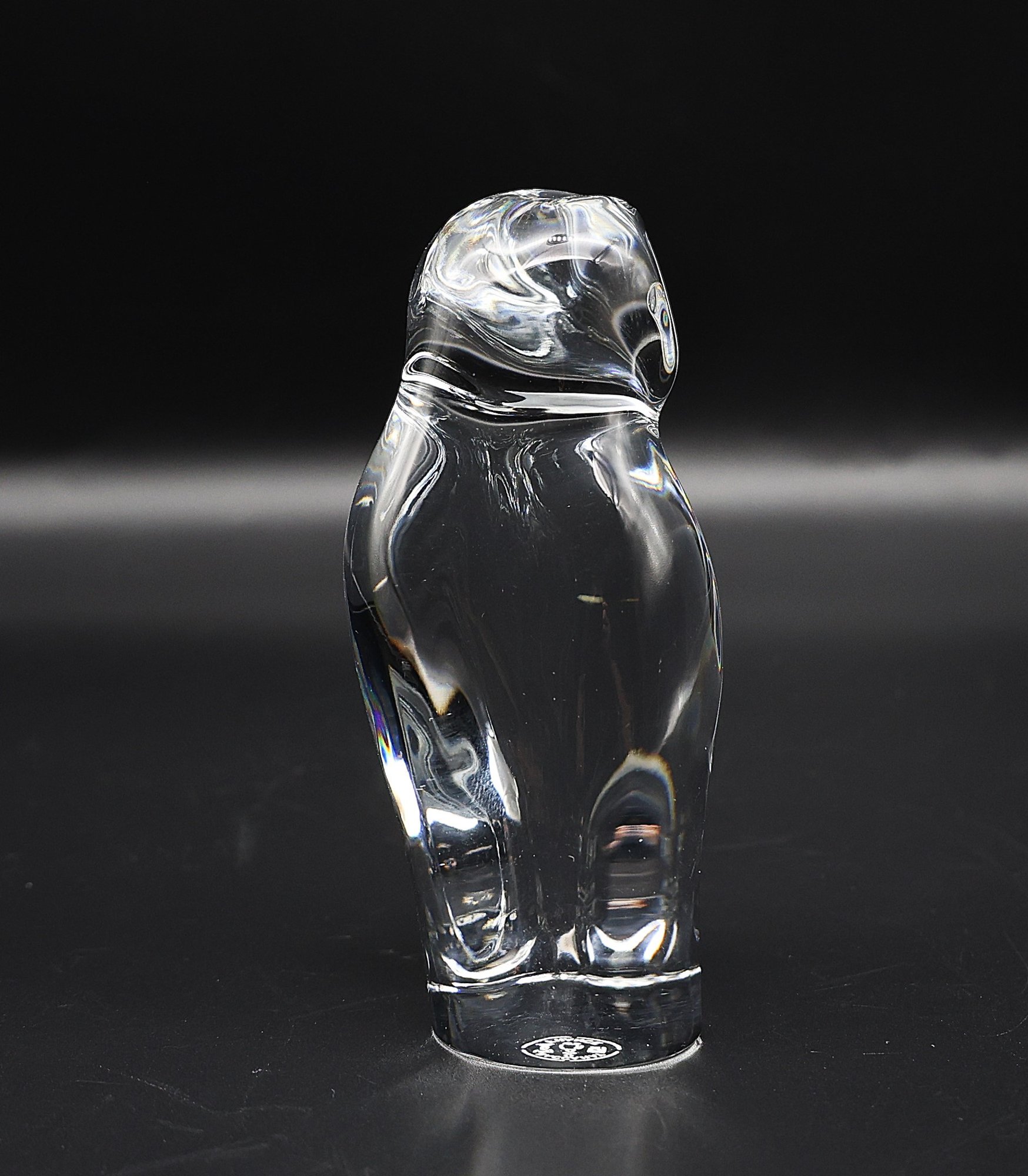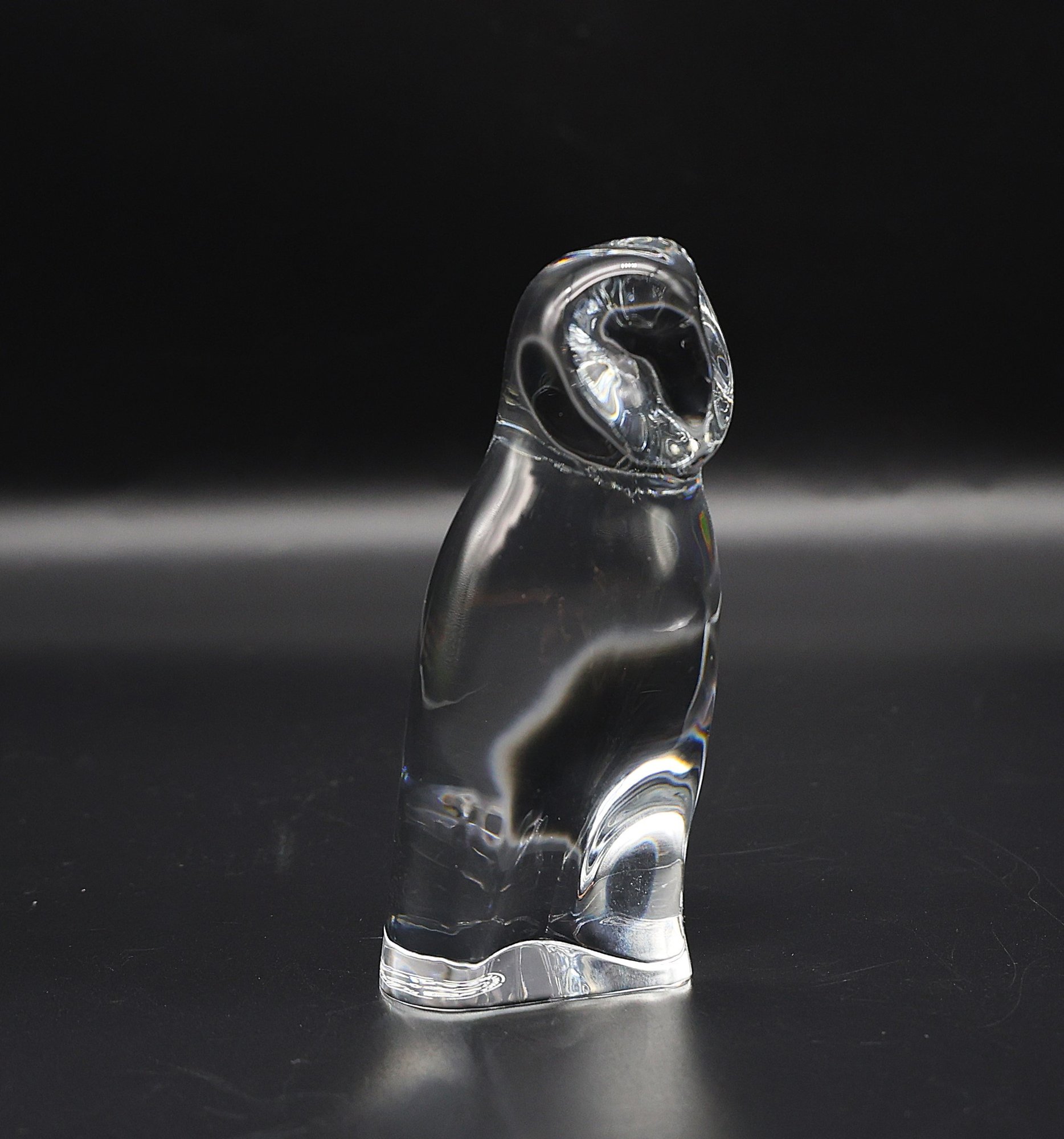 Made in France vintage Baccarat clear crystal owl figurine with etched mark art glass.