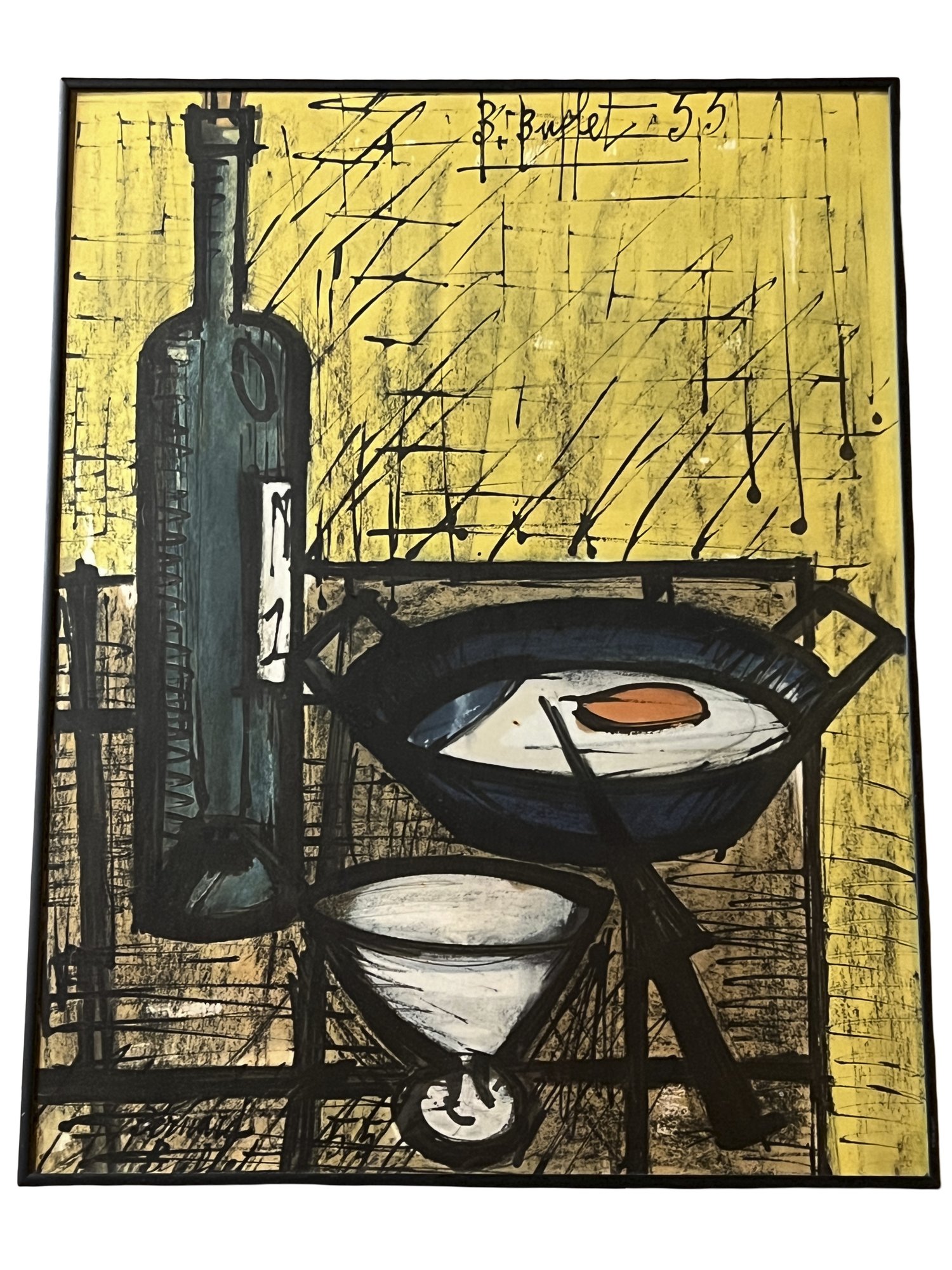 vintage Bernard Buffet(French 1928-1999) 'The Breakfast' offset lithograph poster with black frame.