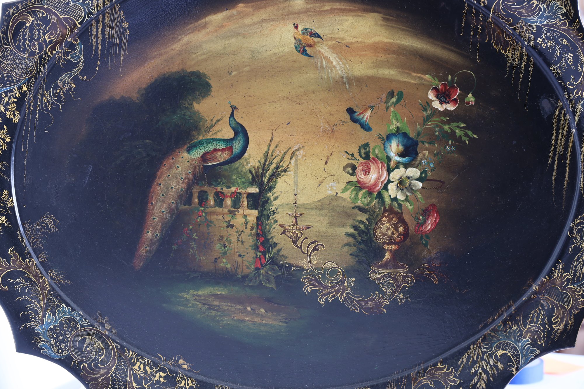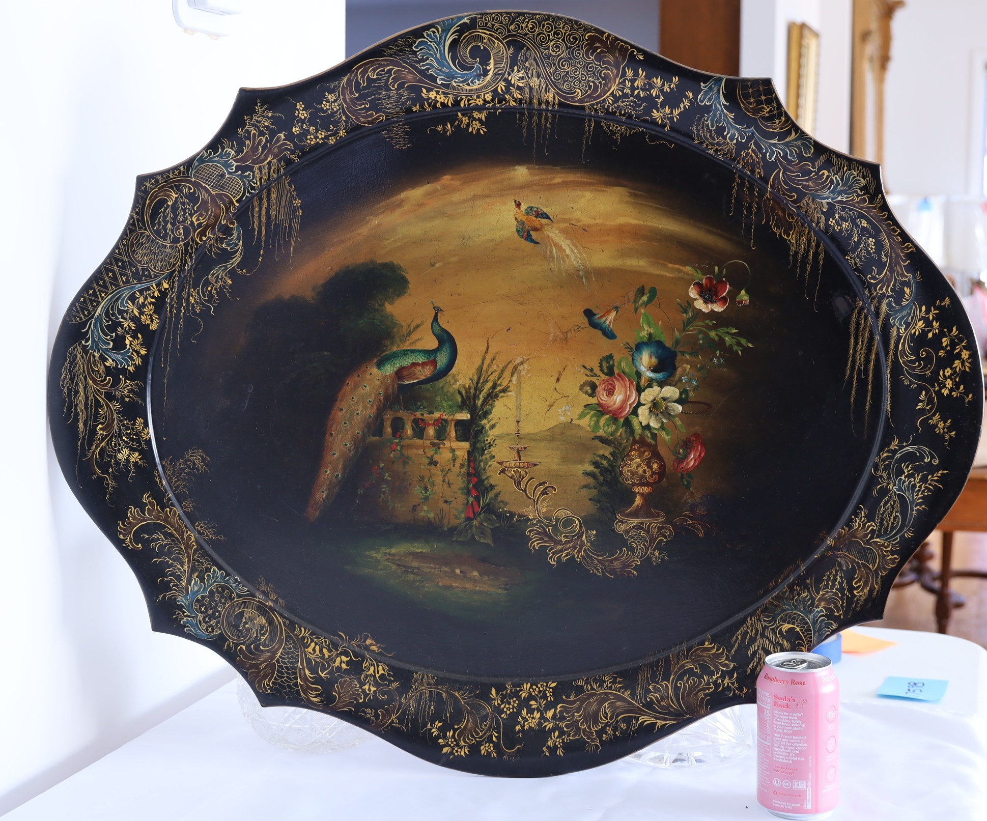 The vintage peacock and flowers are beautifully crafted!n31.5" W x 25.5" L