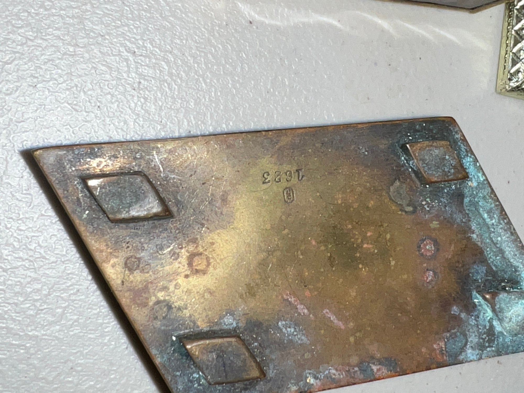 1- Copper cigarette holder box, 2.25" x 3.5" x 1" H.