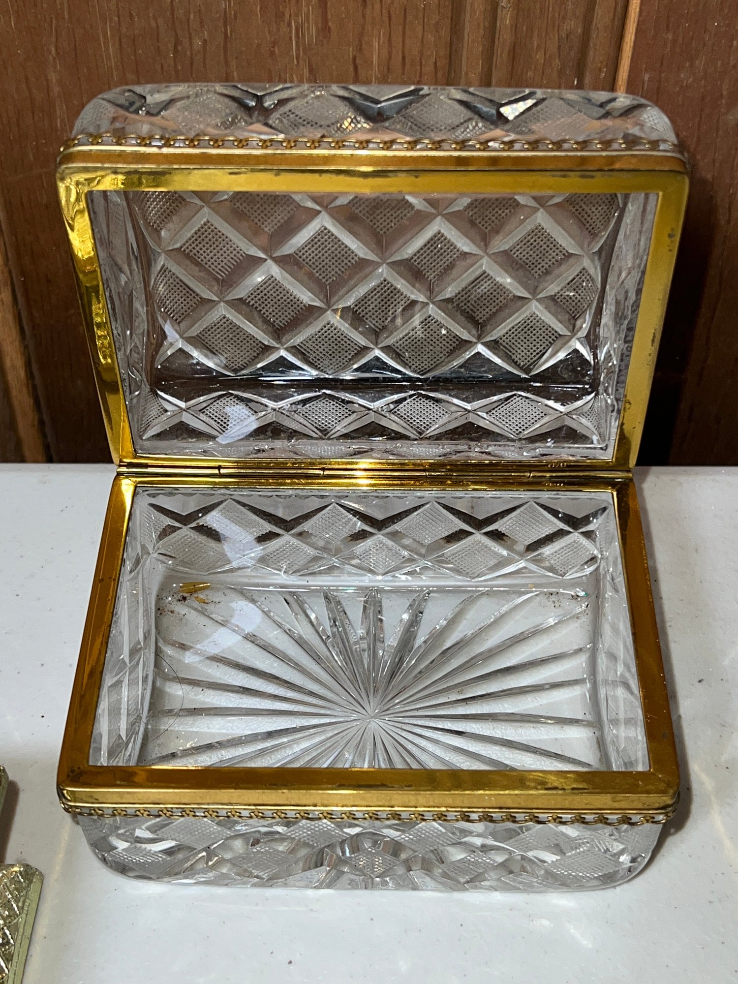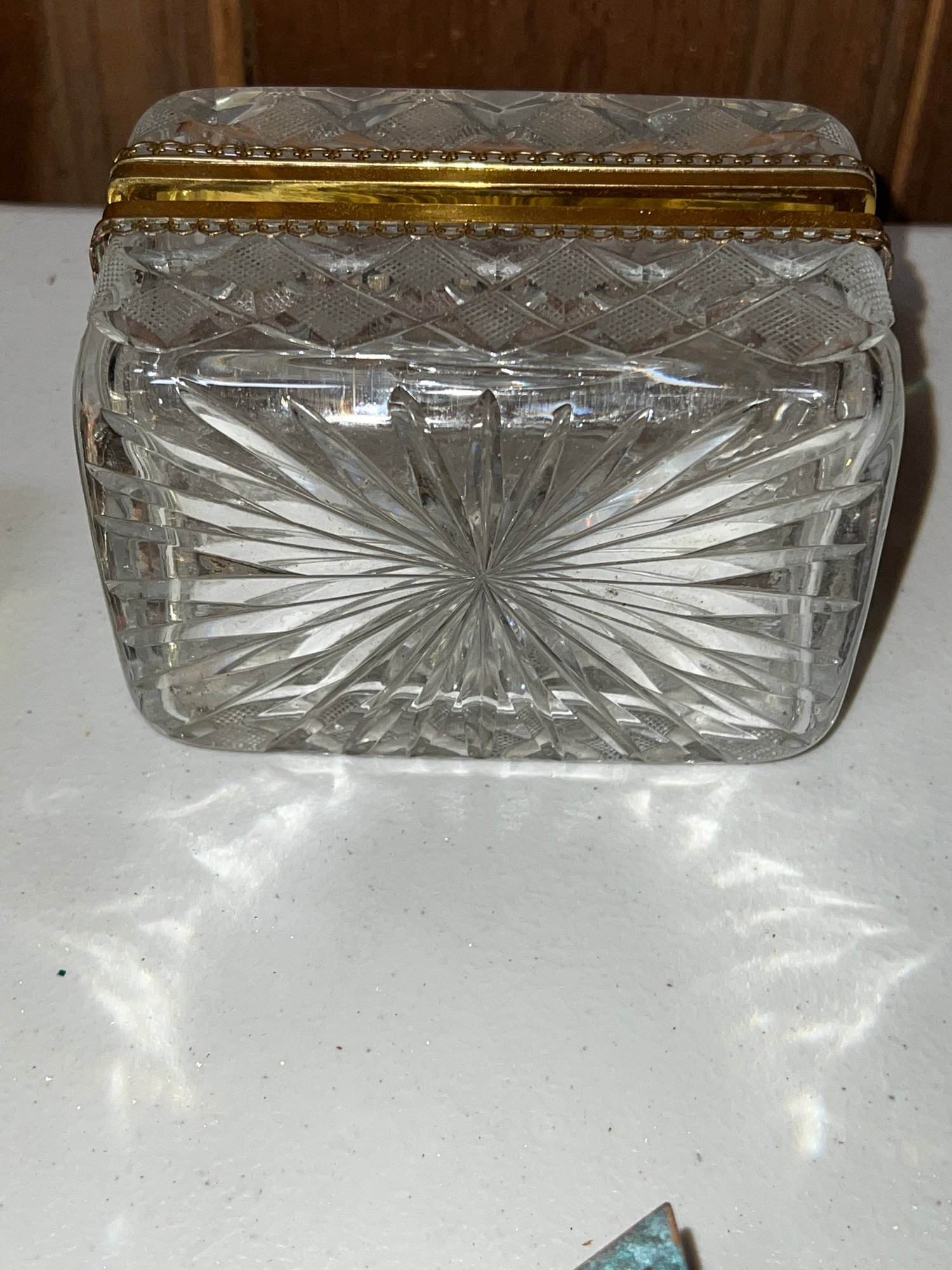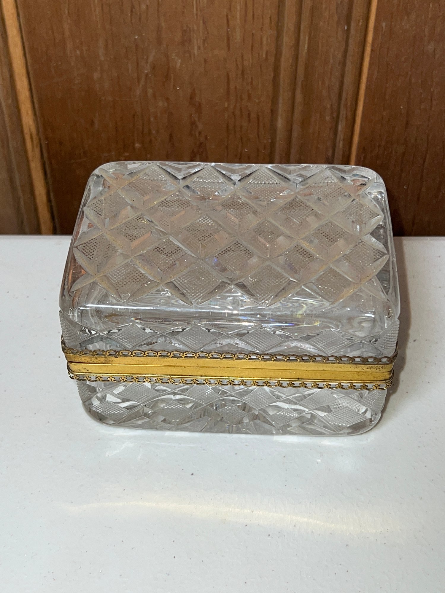 1- Crystal hinged box, elegant, 5" x 3.5" D x 3".