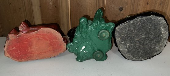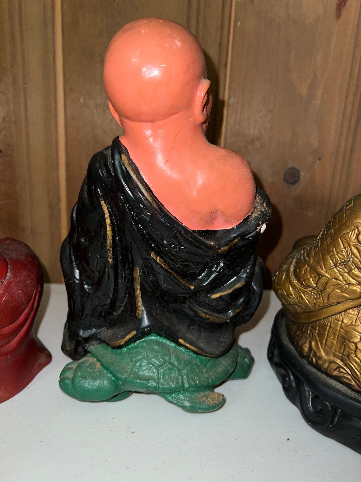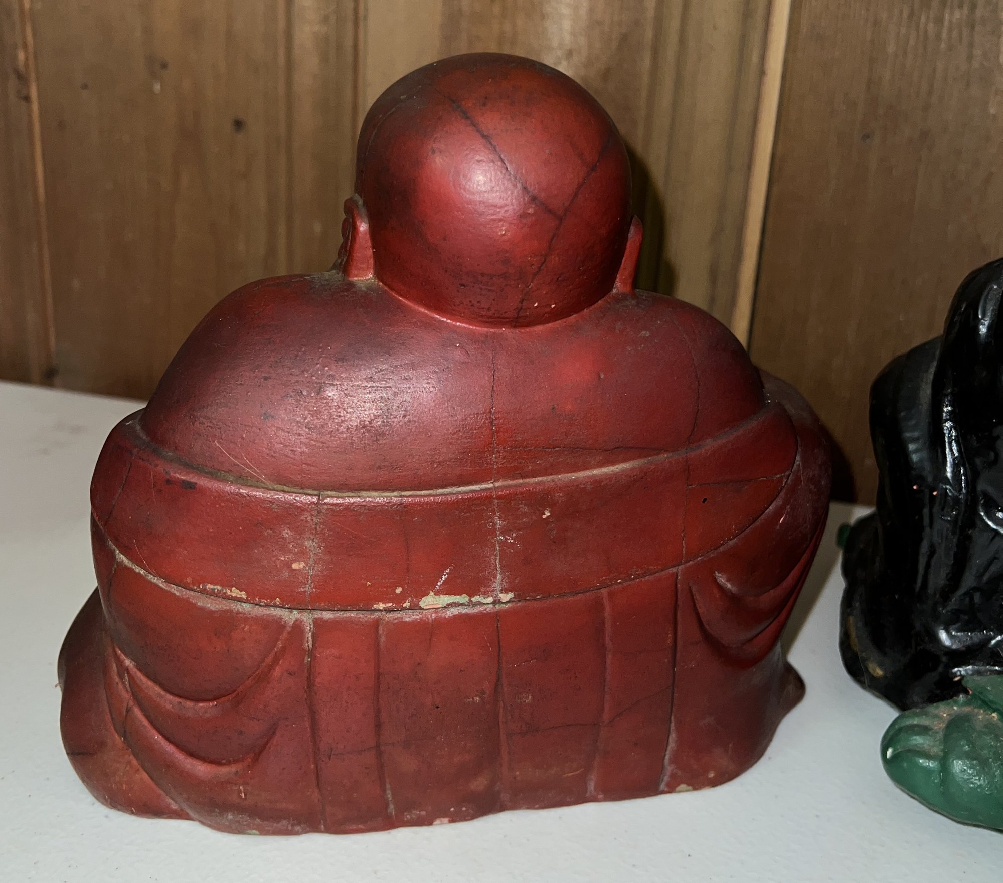 One red cement sitting Buddha 6.5"H