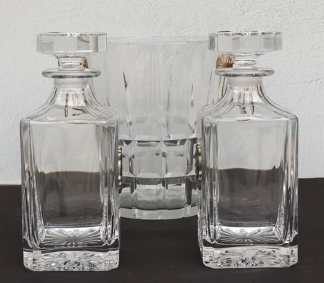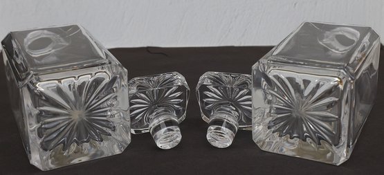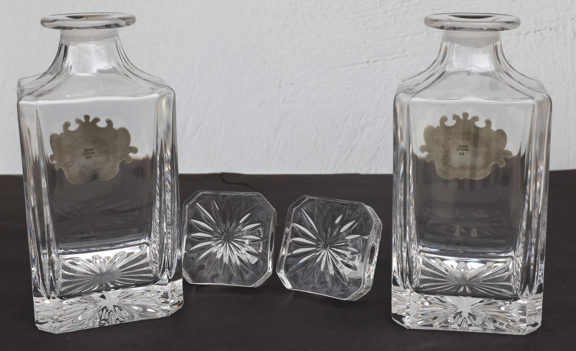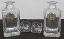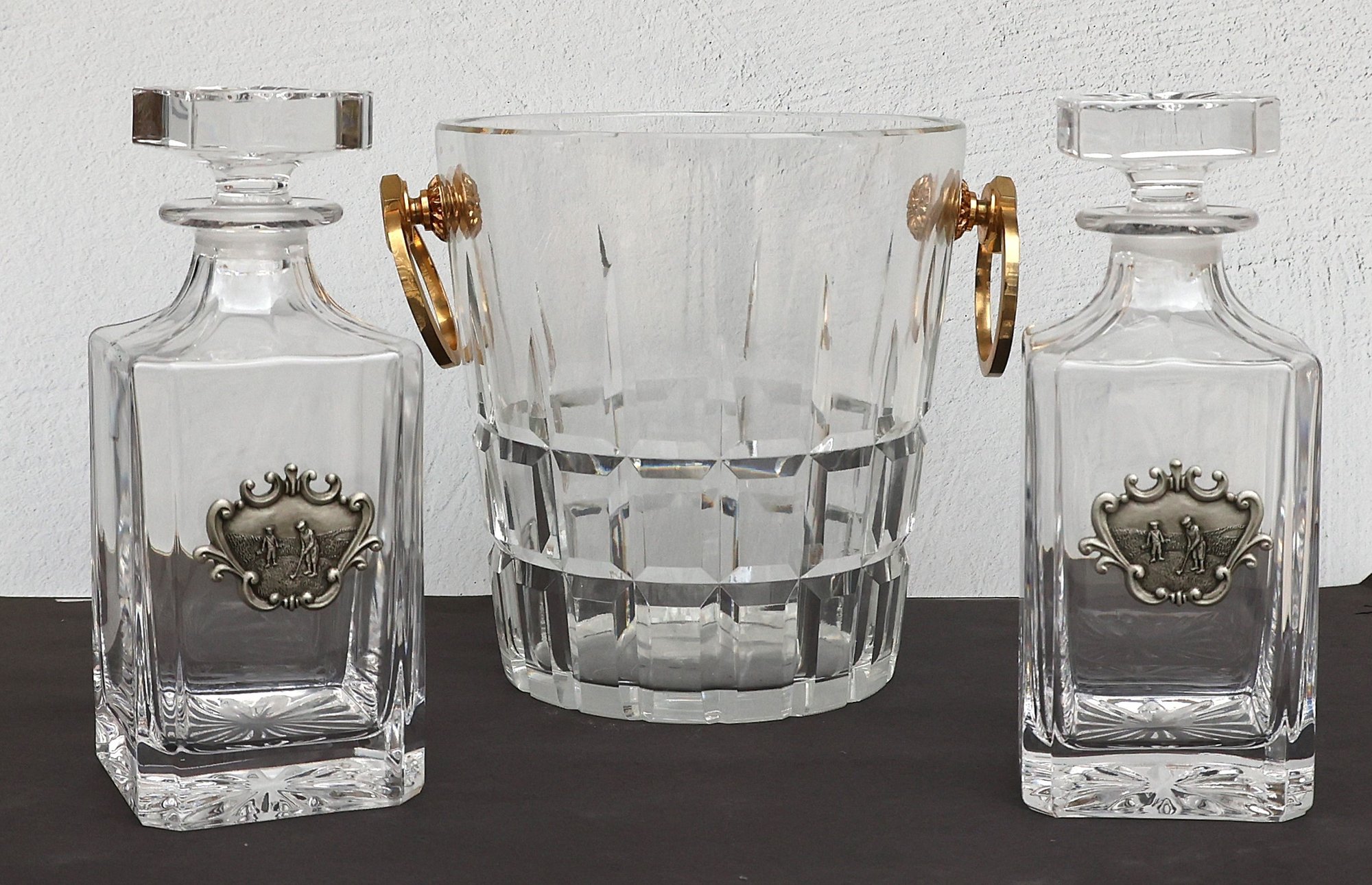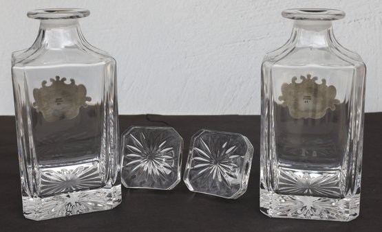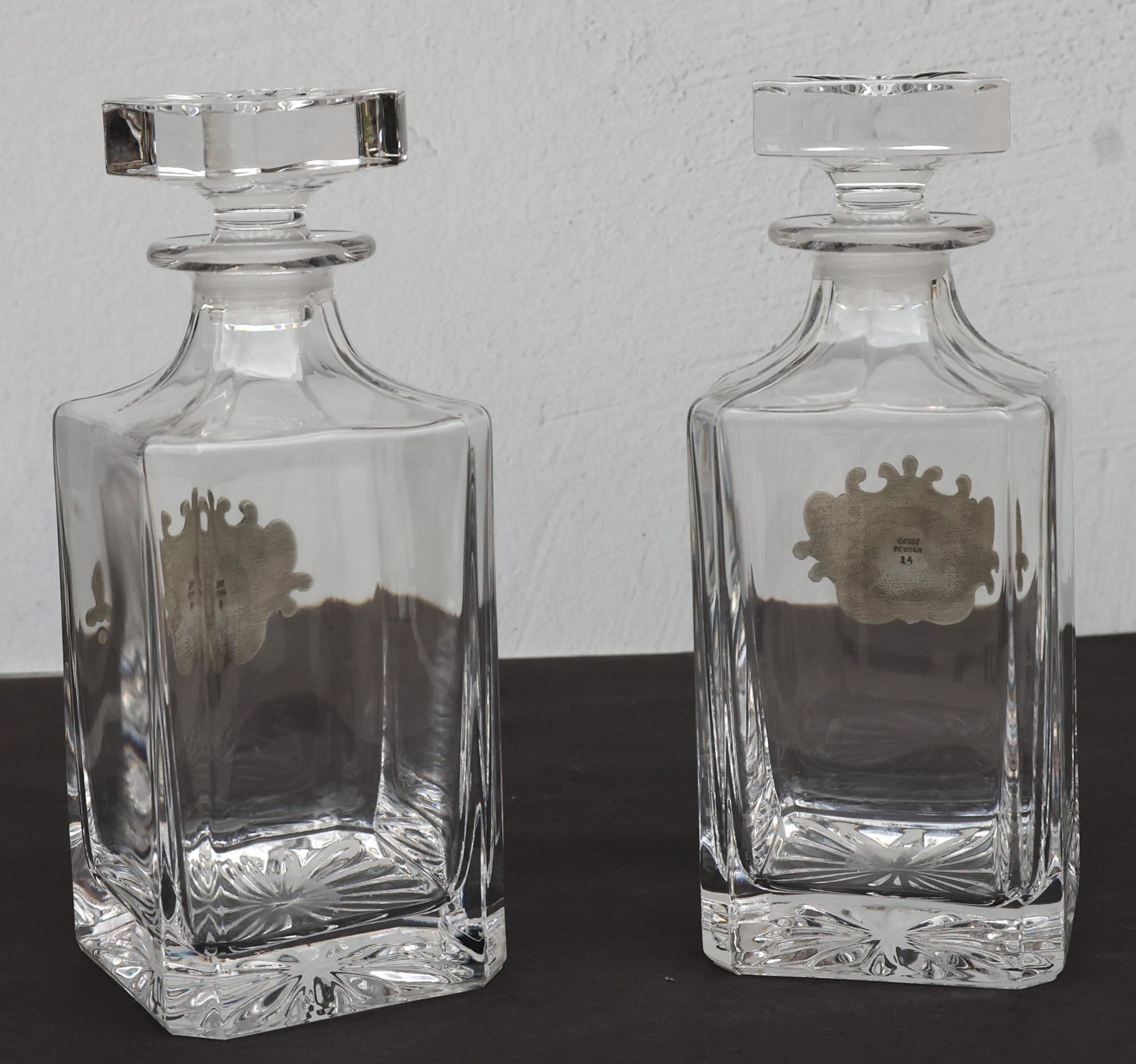Two Decantors with pewter plates featuring a golfers theme - 8.75"H x 3.5" base