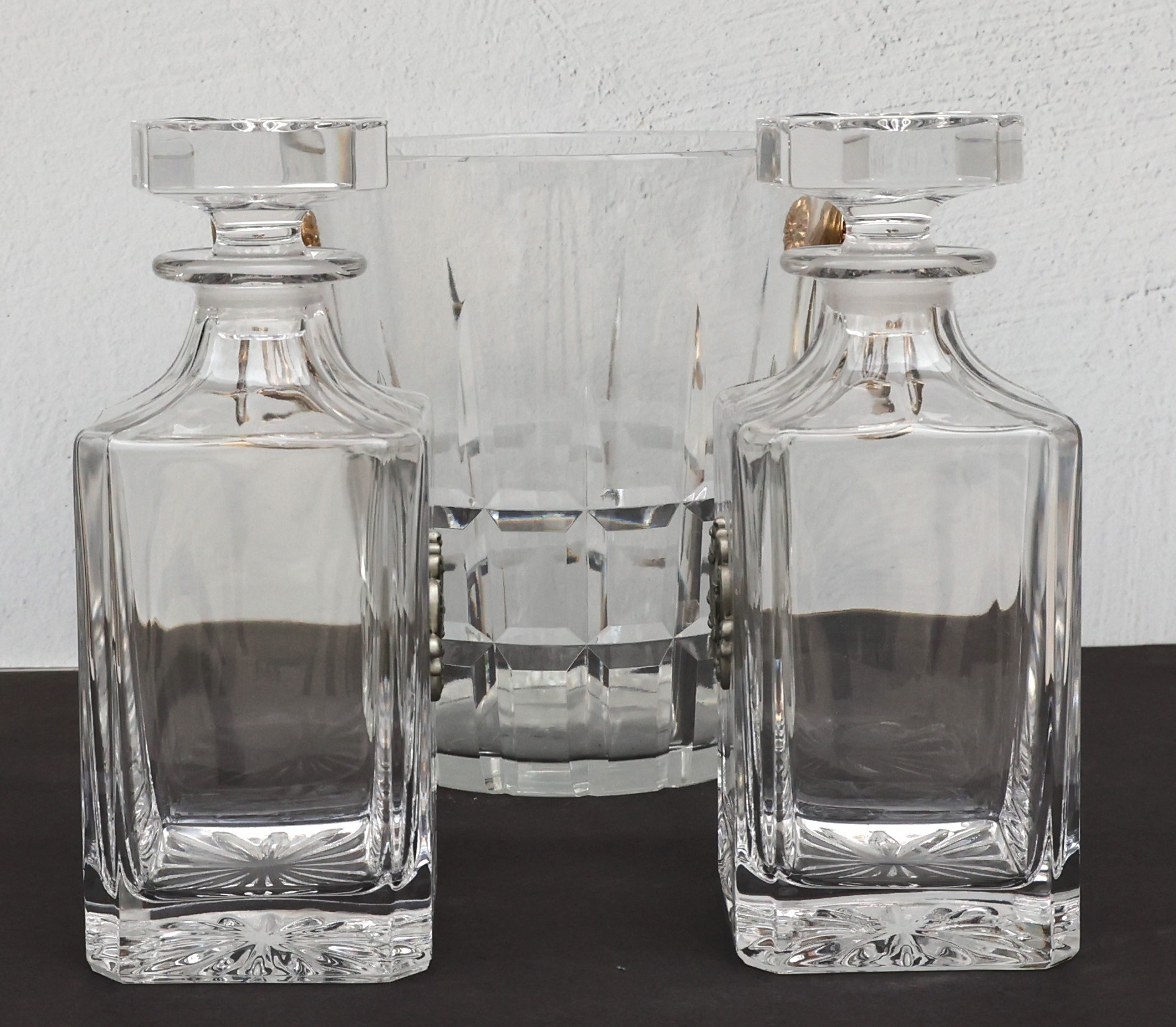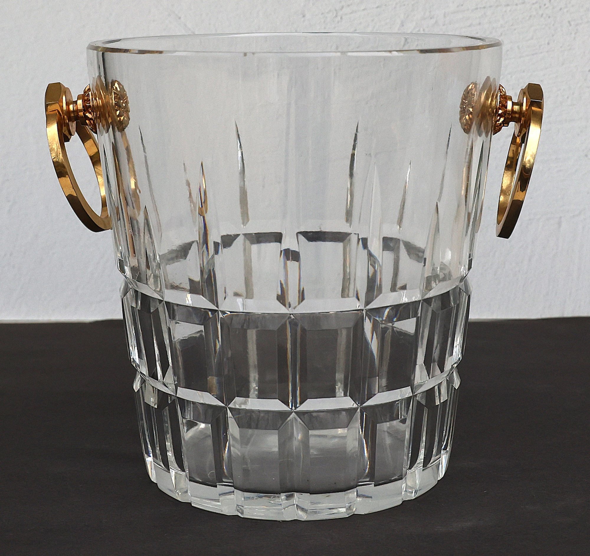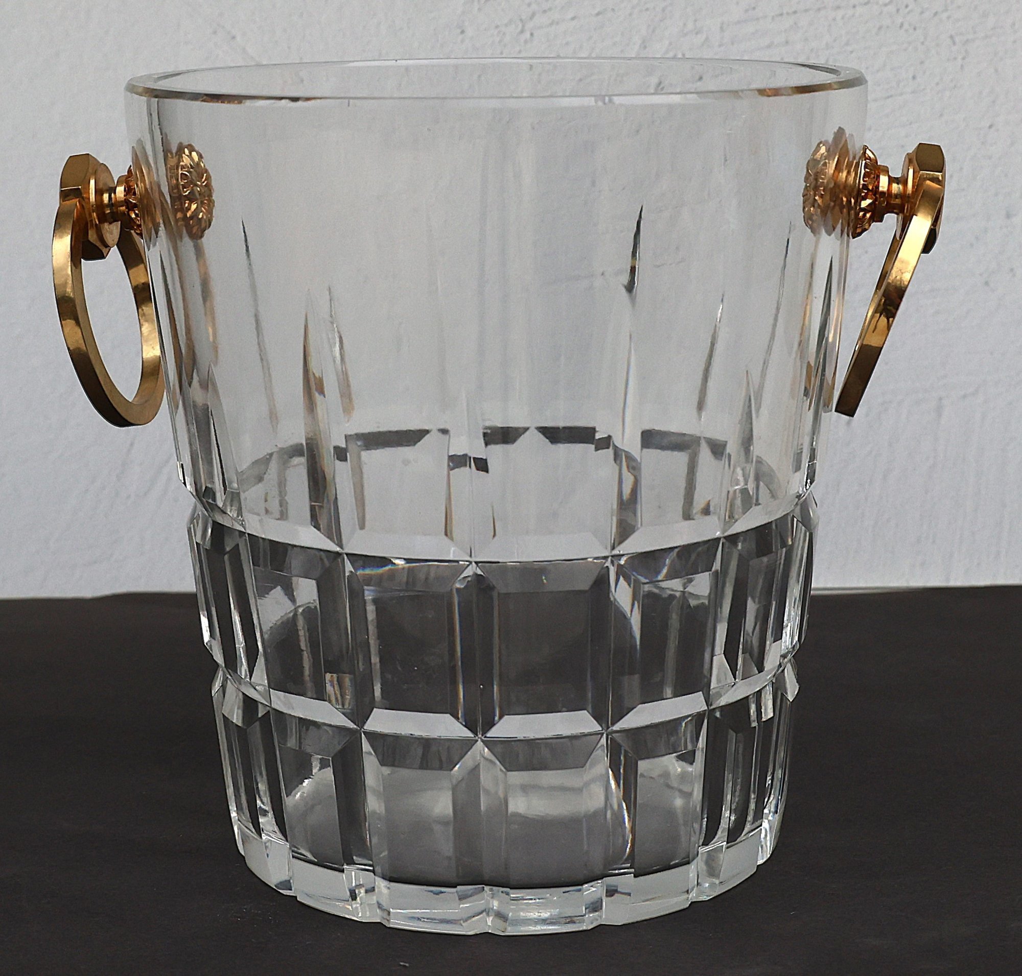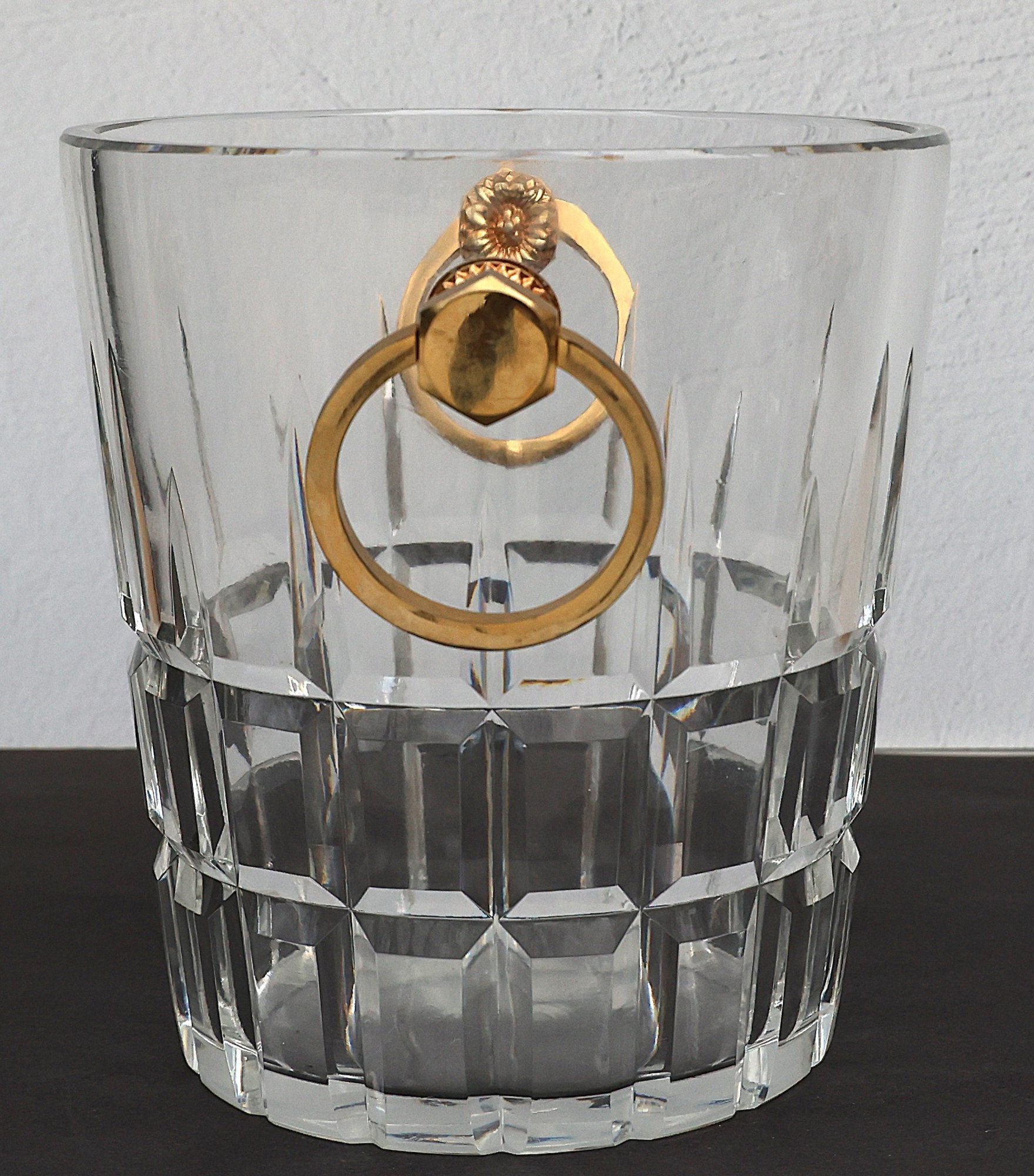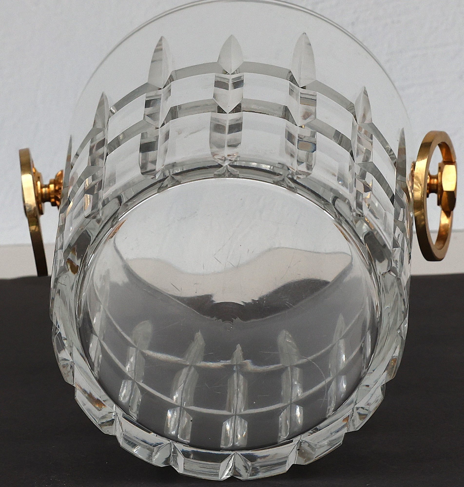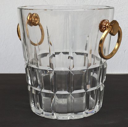 Heavy Crystal Ice bucket with gold tone handles - 8"H x 7.75"D x 6" base