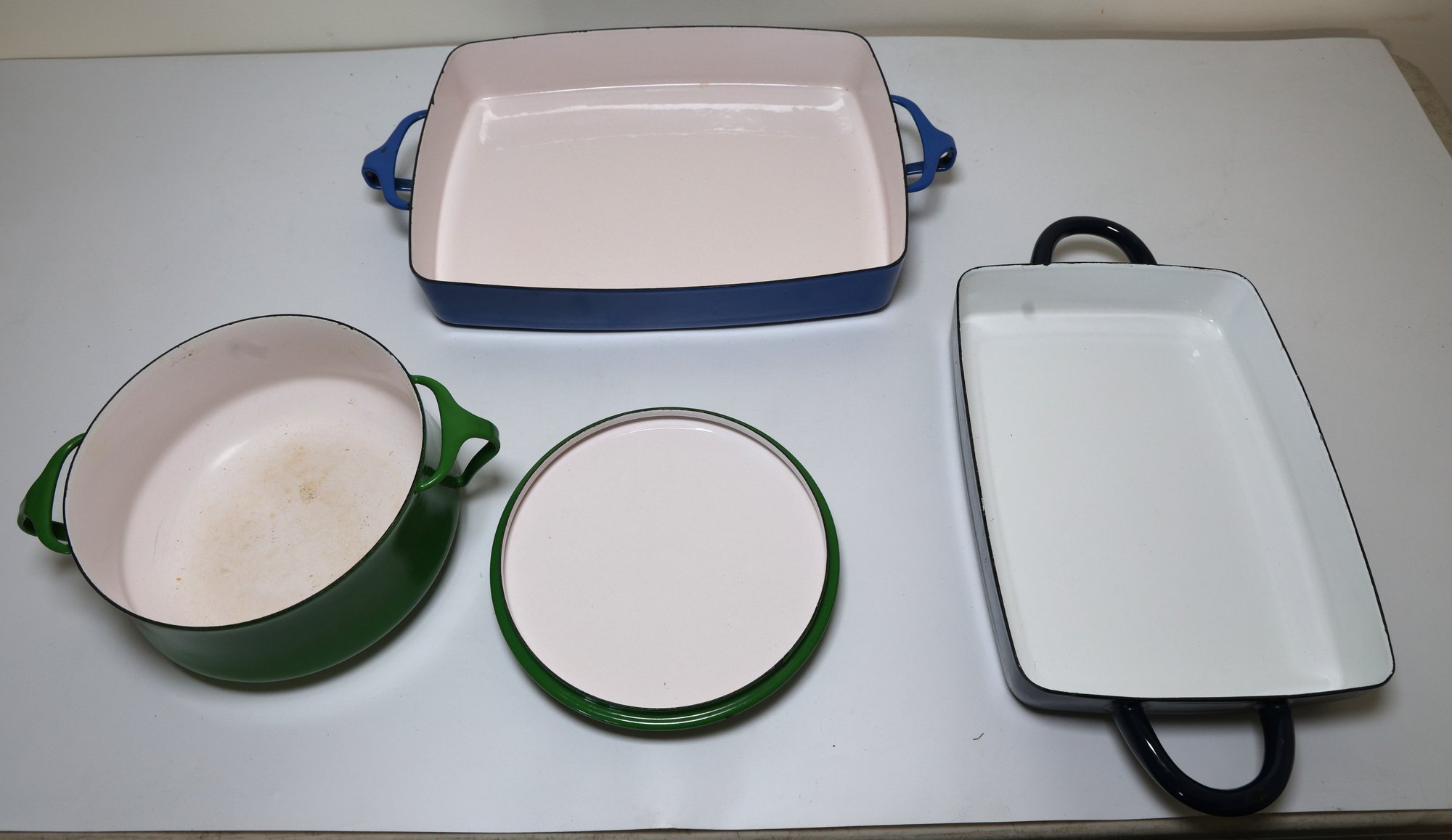 1 blue casserole dish, vintage, 13" L - France design.