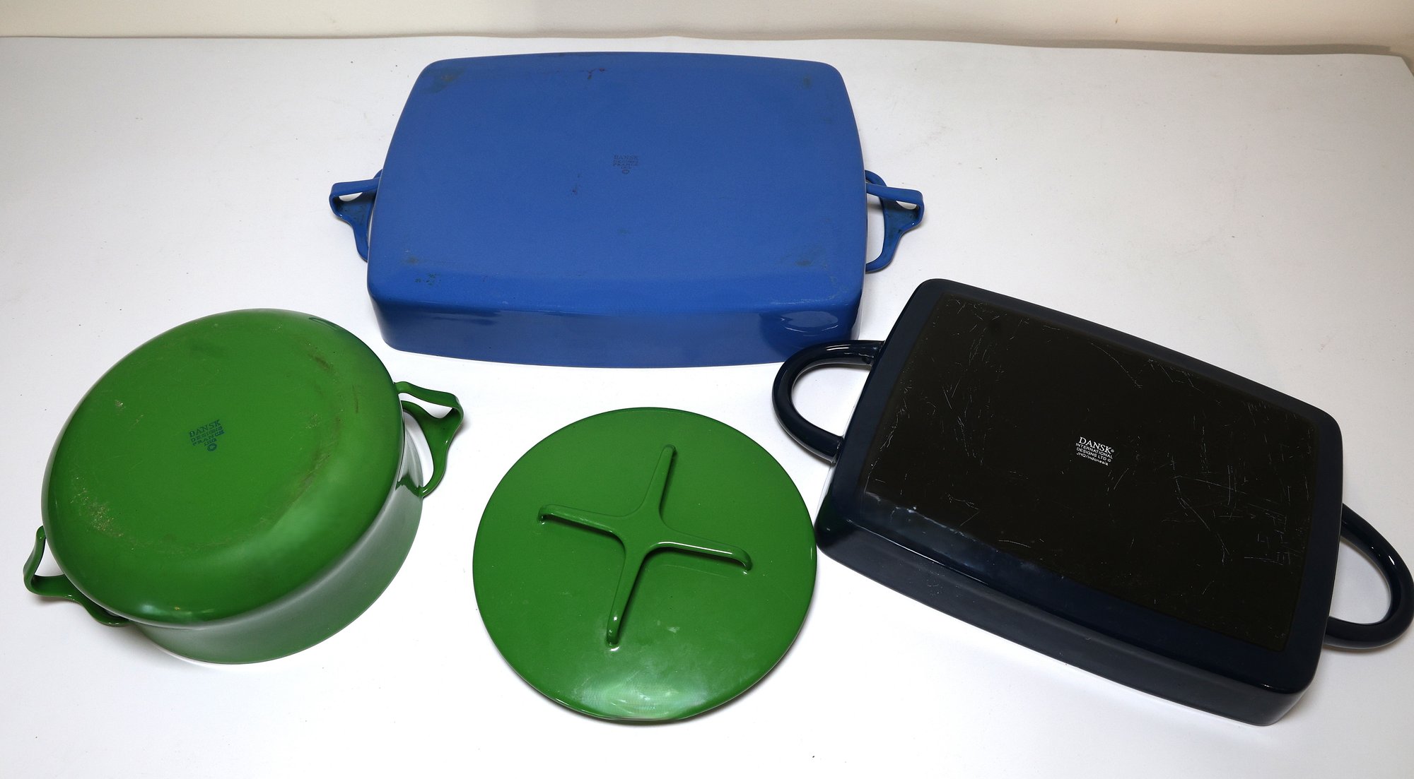 1 dark blue casserole dish, vintage, Indonesia design, 10.75" L.