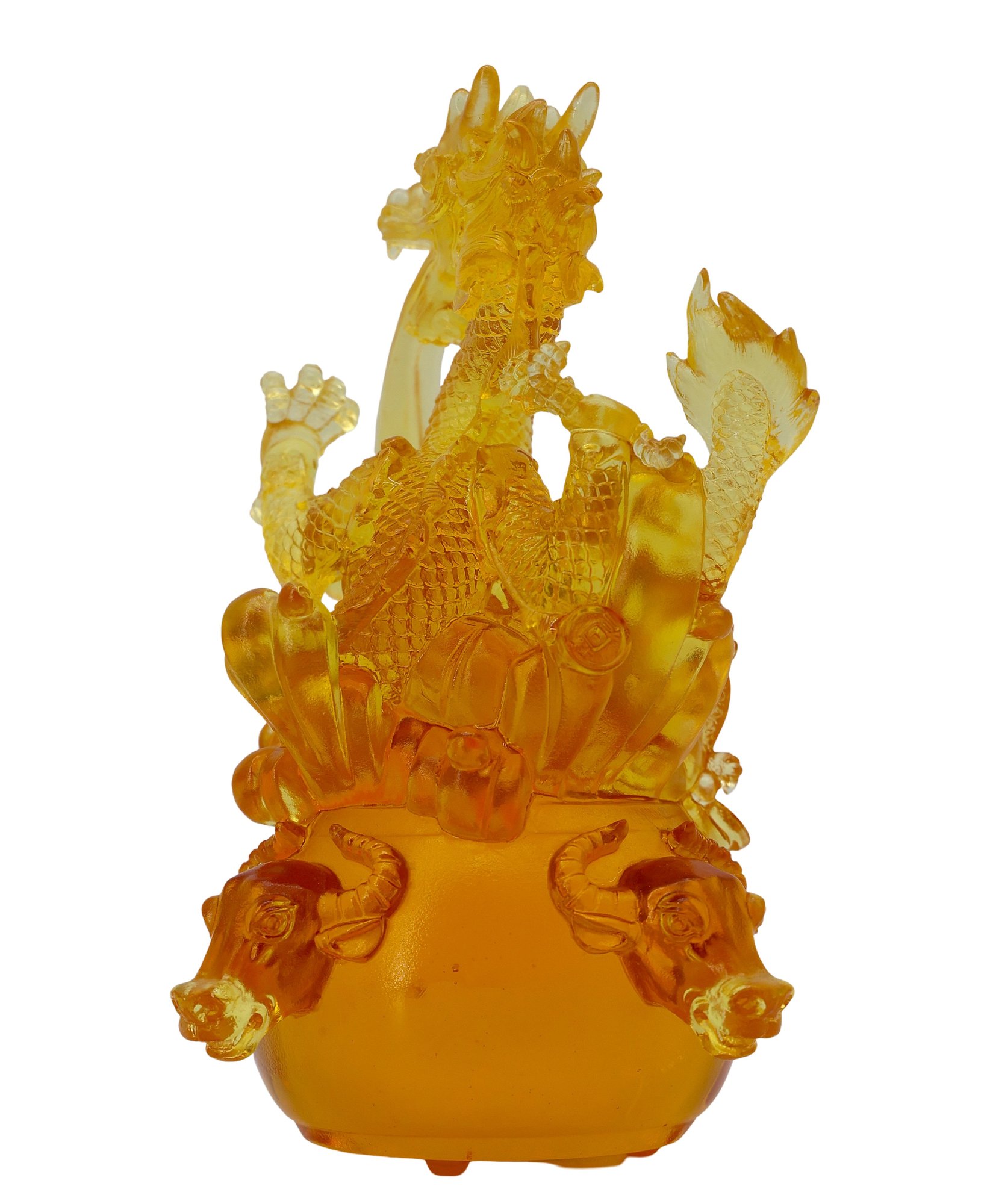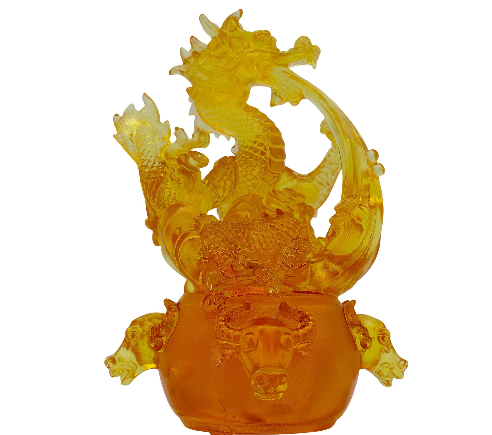 The dragon symbolizes strength, power, and good fortune, while the wealth pot draws abundance.
