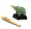 Vintage elephant on stand. Appears to have a chip off the tip of the trunk, hairline on back leg. 3.75"W x 2.5"W Approx. without stand.