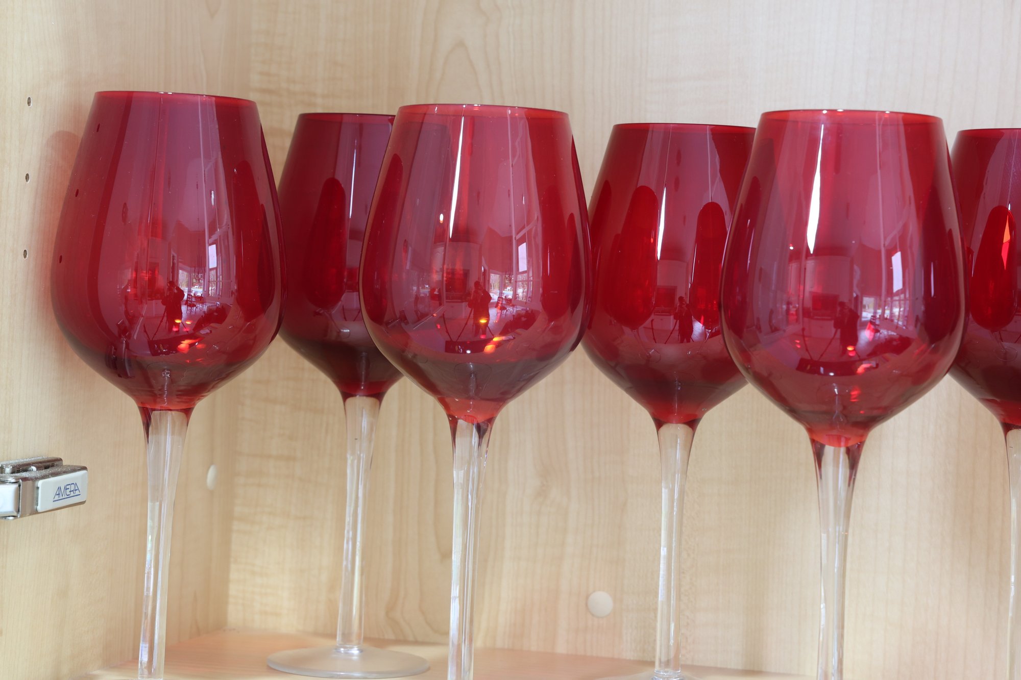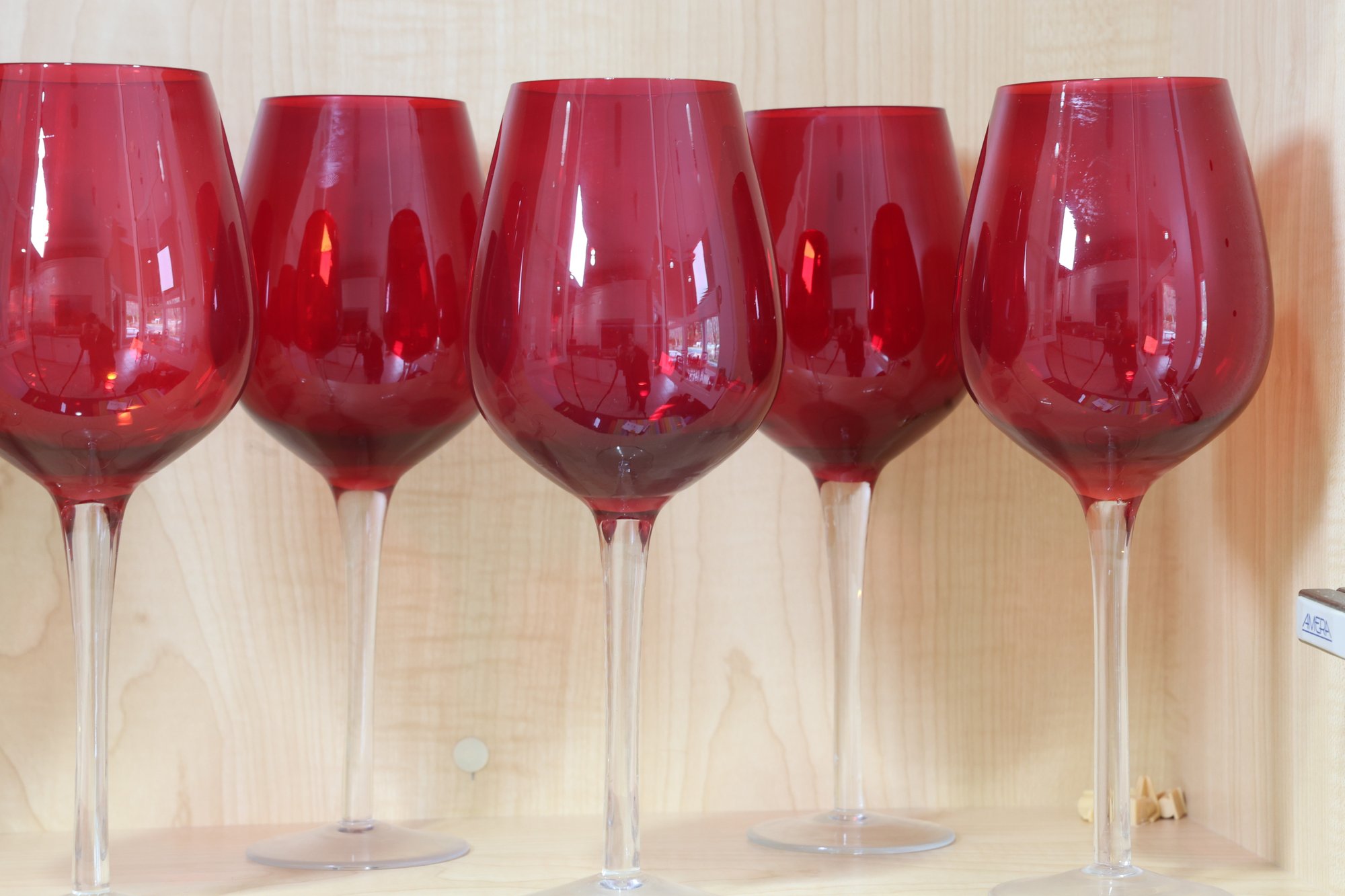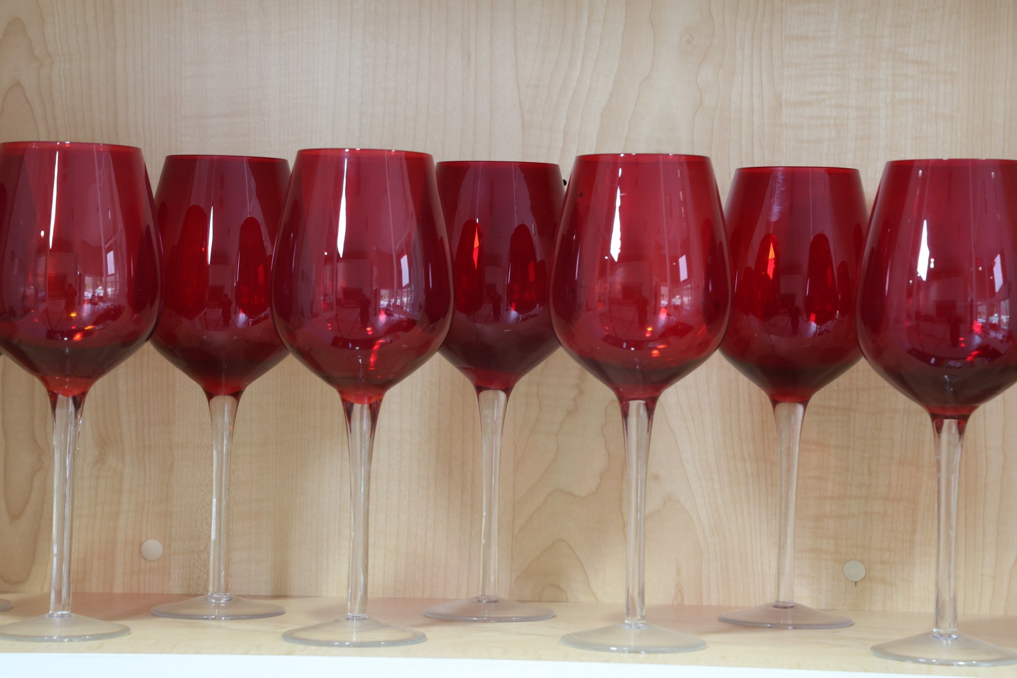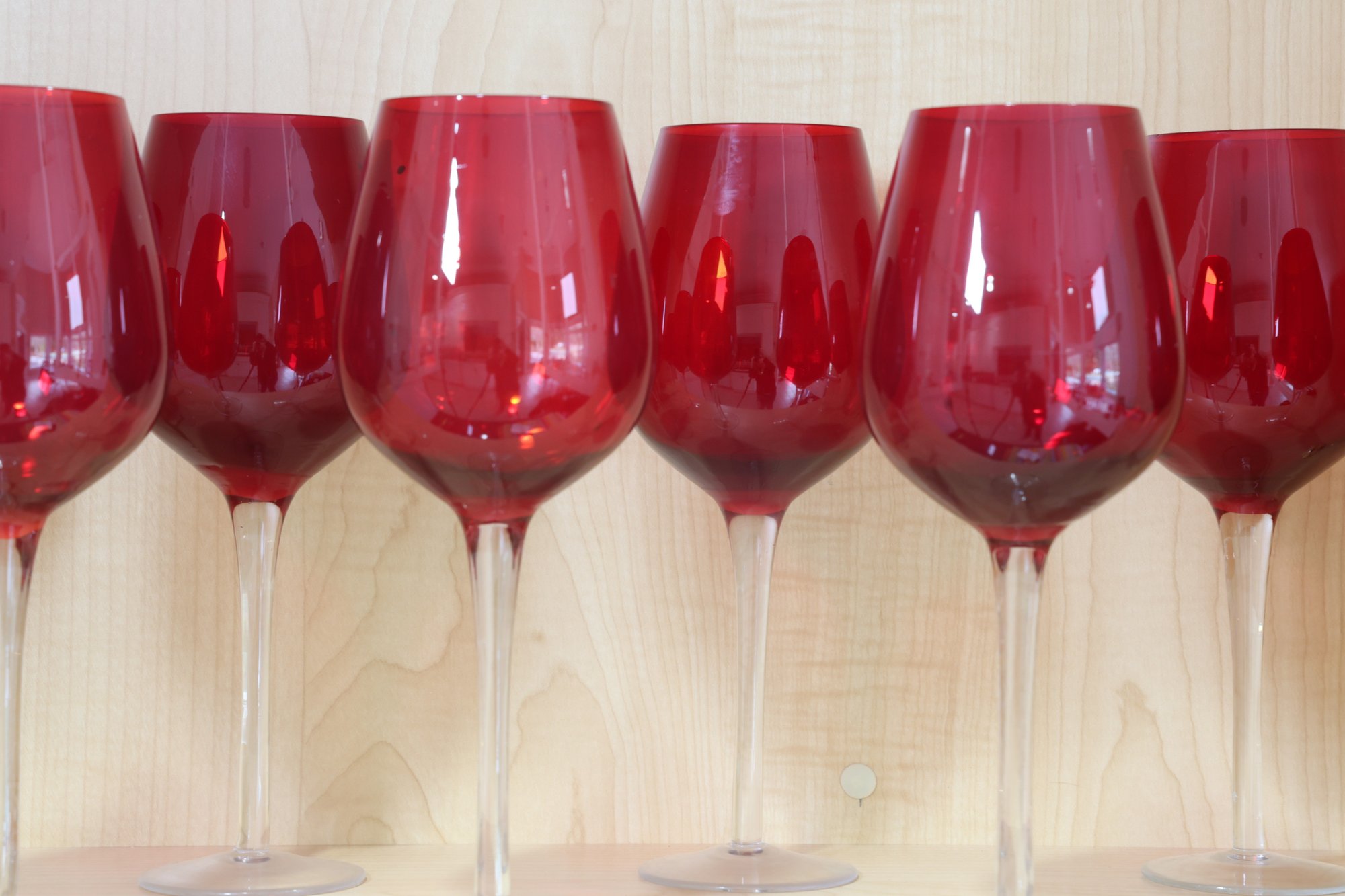 Ruby red to clear very nice wine glasses