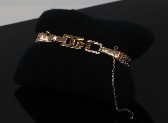 extra link on the end stainless steel, rest of the band is gold.
