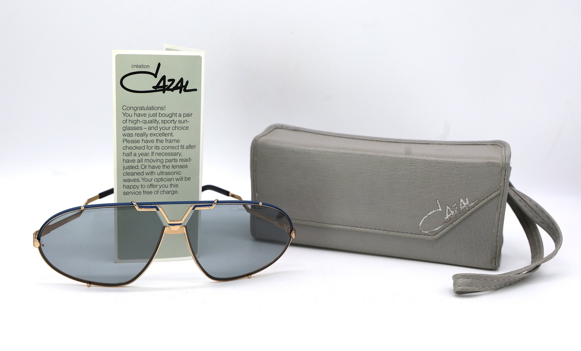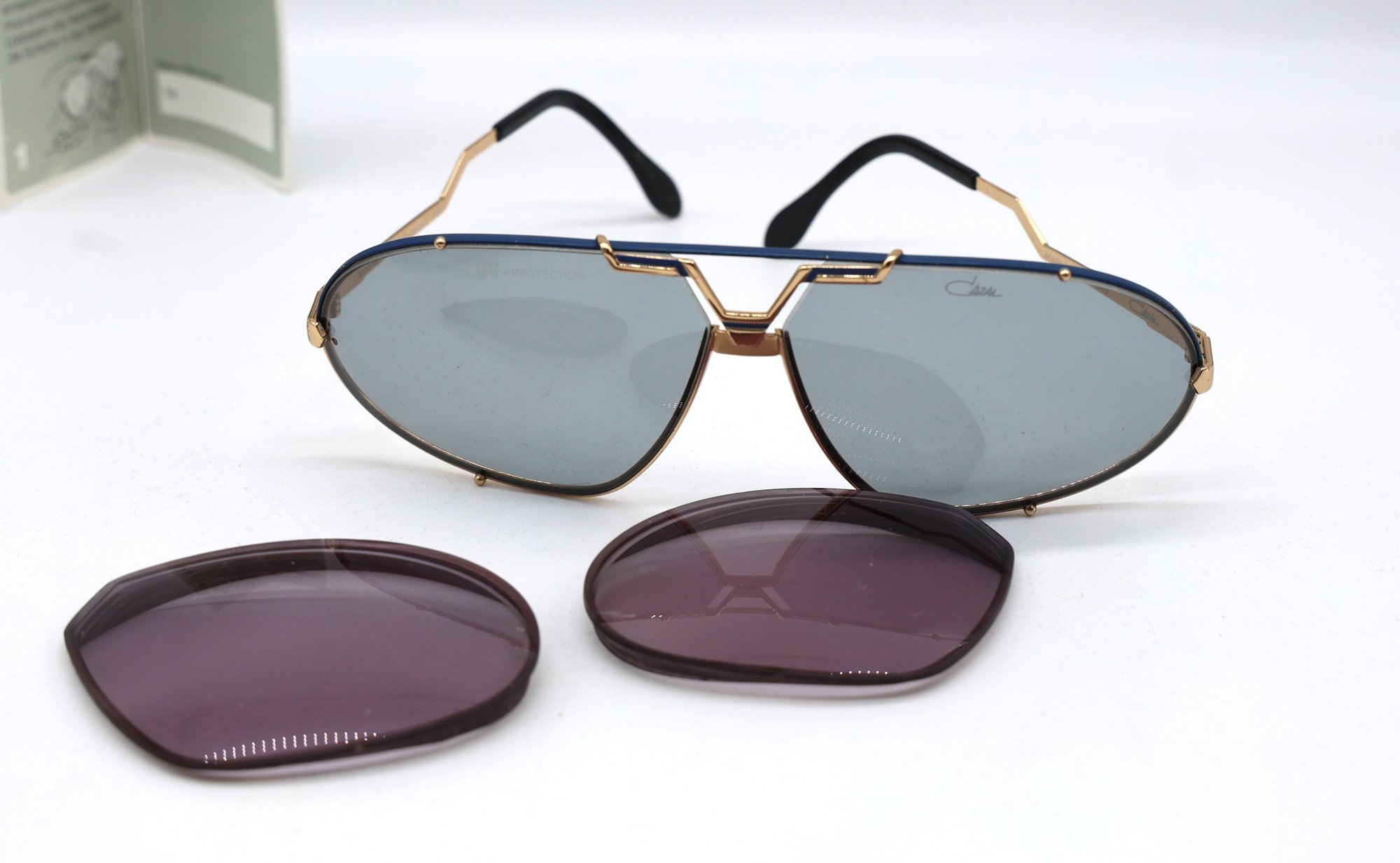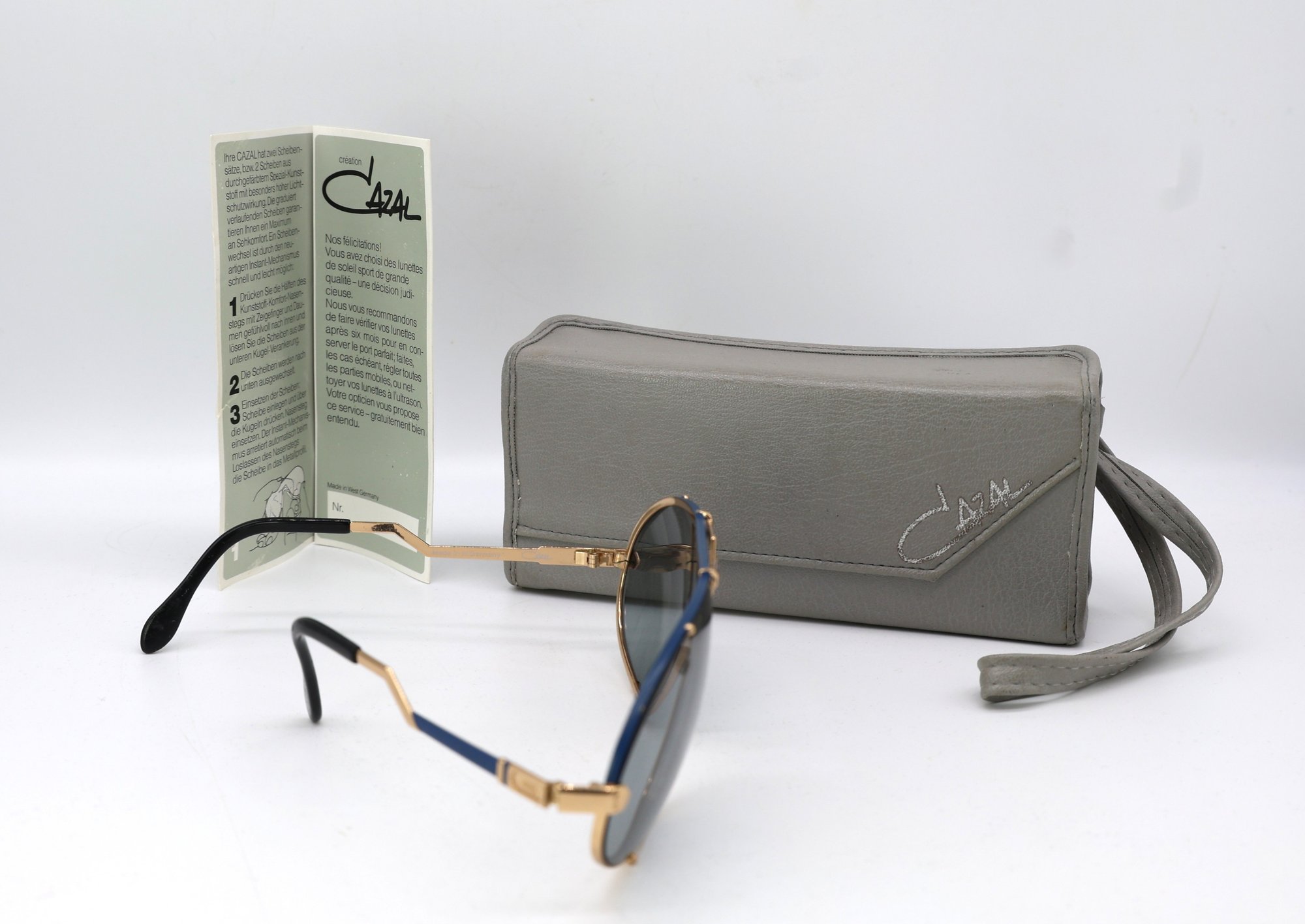 vintage German Cazal sunglasses with original case model 906 blue frame. Made in Germany. Comes with extra frames and paperwork. 6"W x 2"L