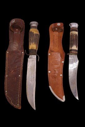 Edgemark original Buffalo Skinner German #496 stainless steel with bone handle & leather Edgemark sheath - 9.25" total length, 5" blade - nice condition