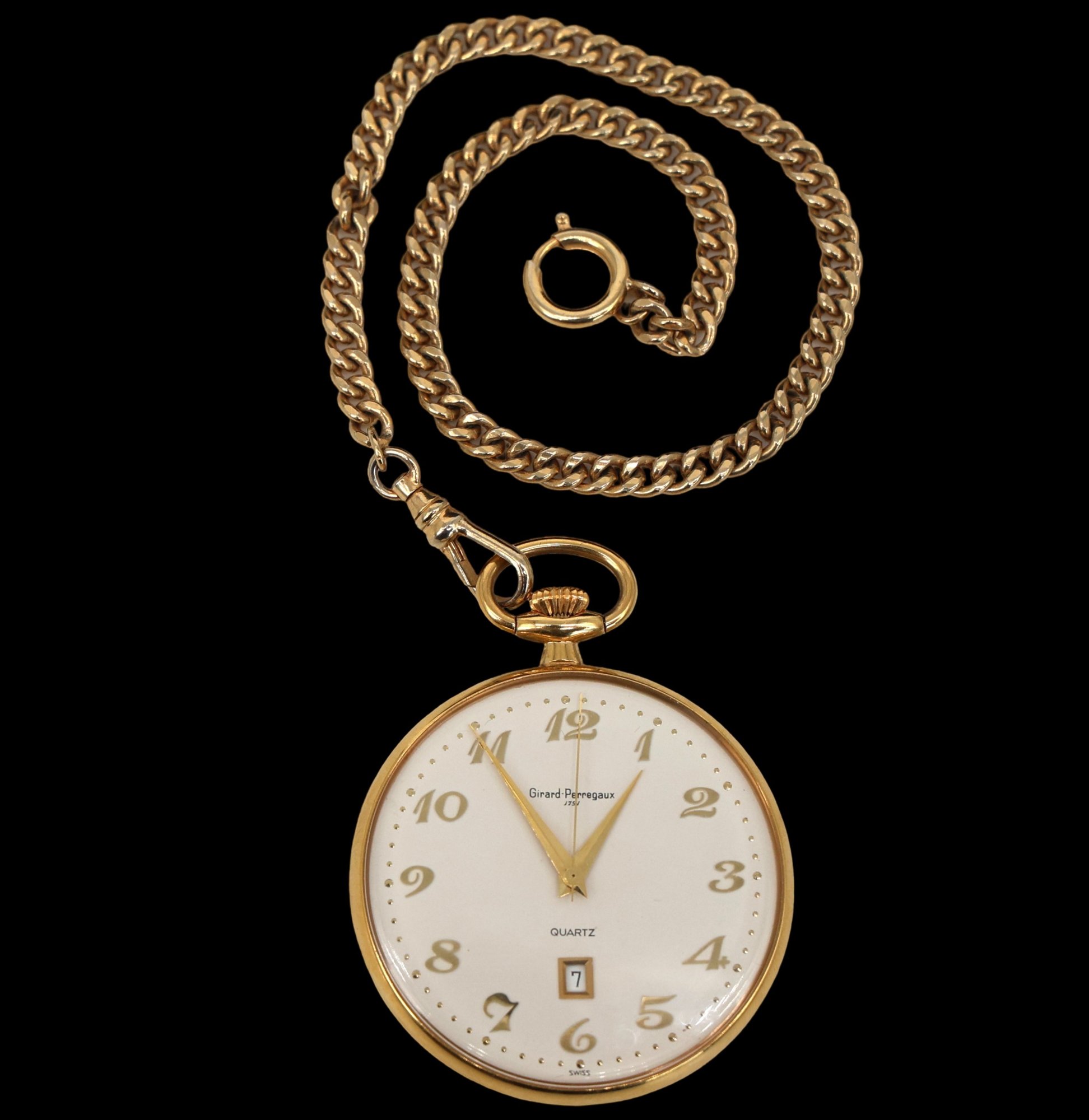 Nice pocket watch with calendar and chain.