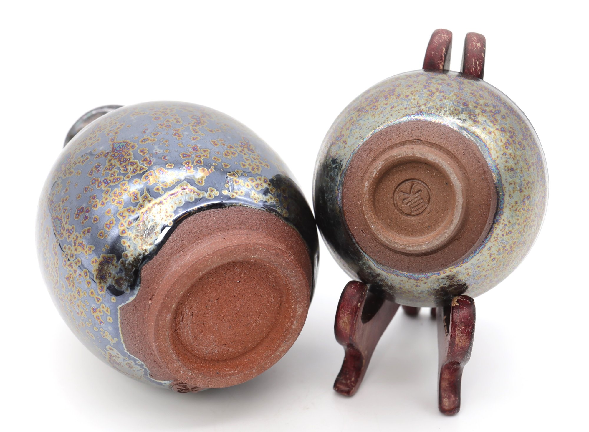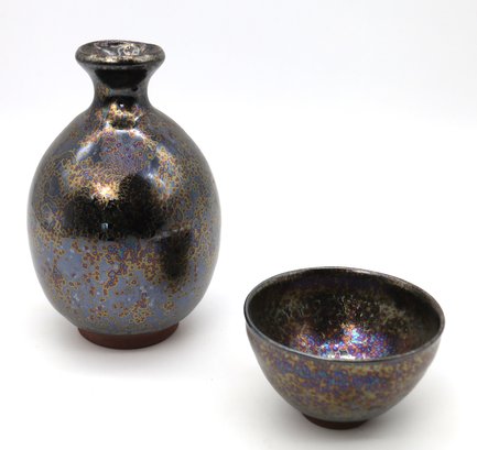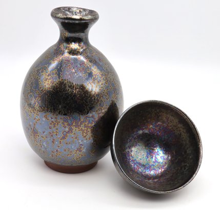 Vintage Japanese sake set in a lovely shiny iridescent black color.