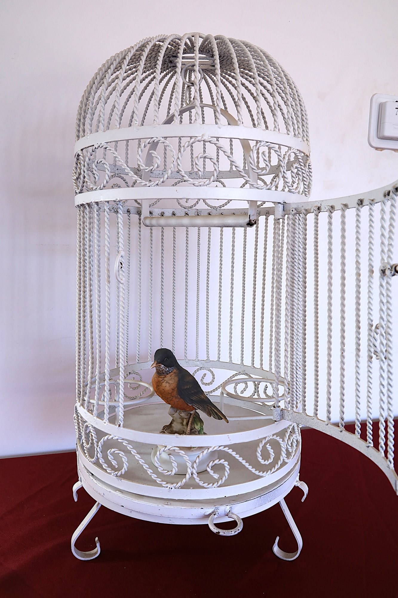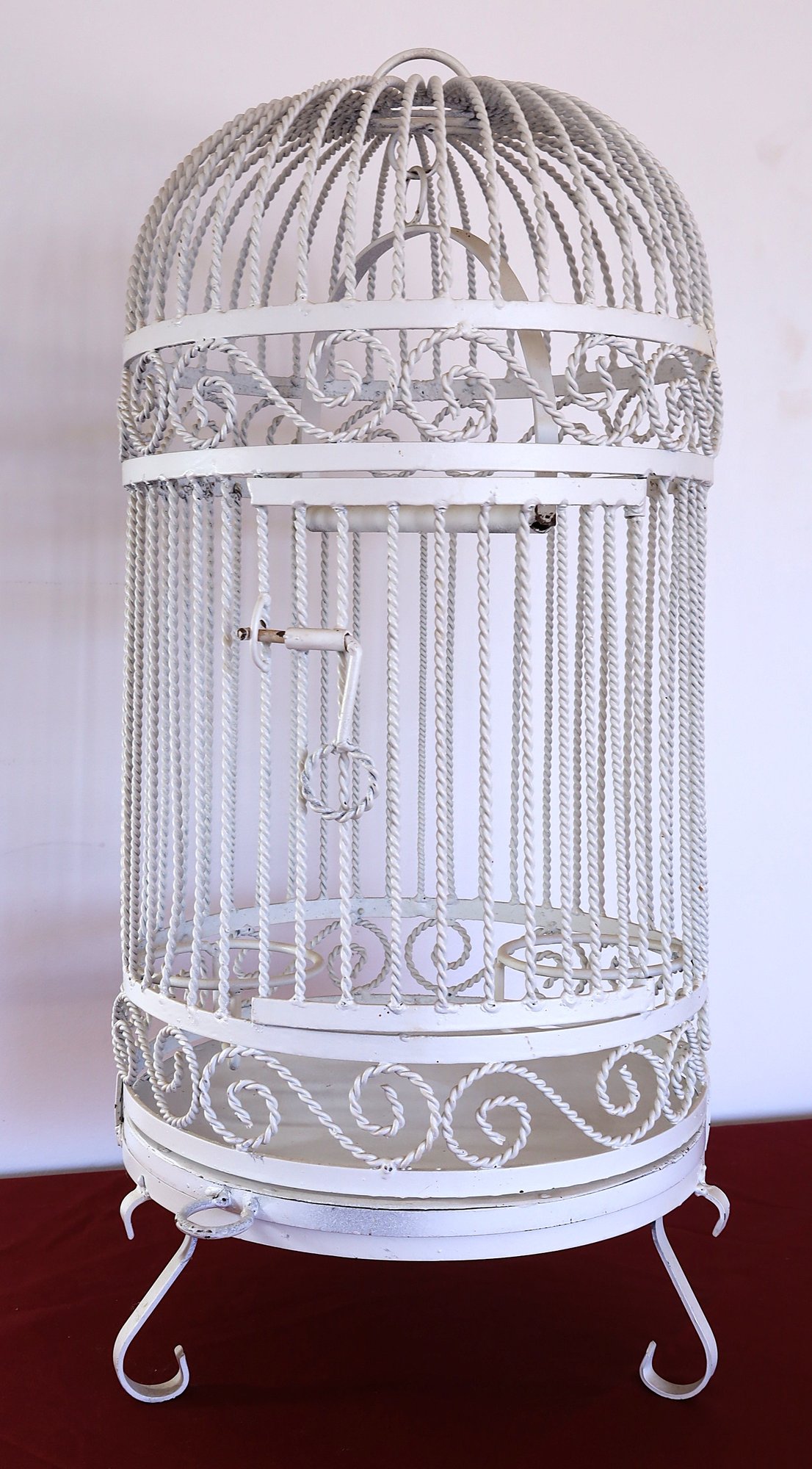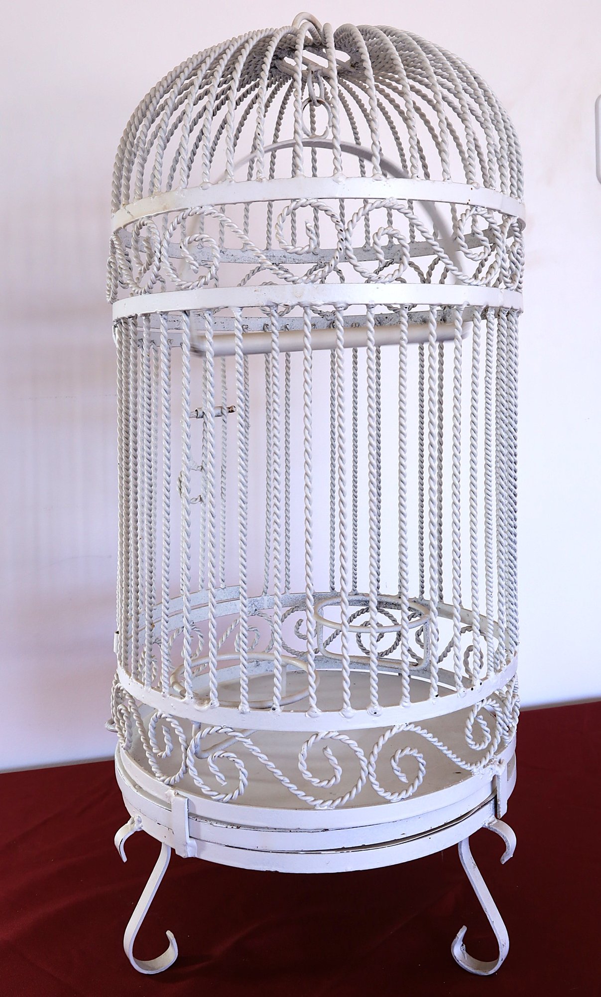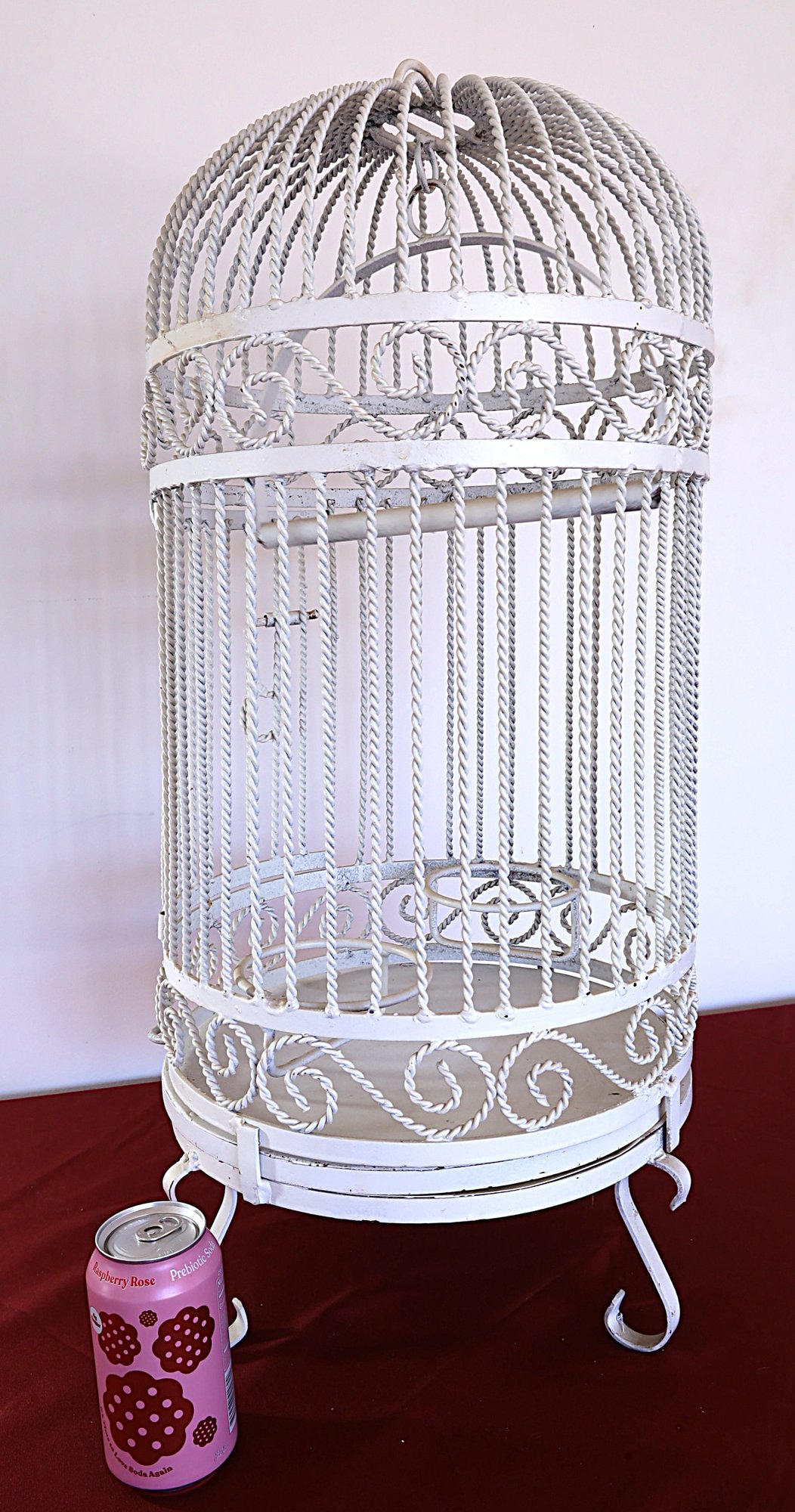 Birdcage has a perch bar , 2 bird feeders, holders and 3 legs - 28" H