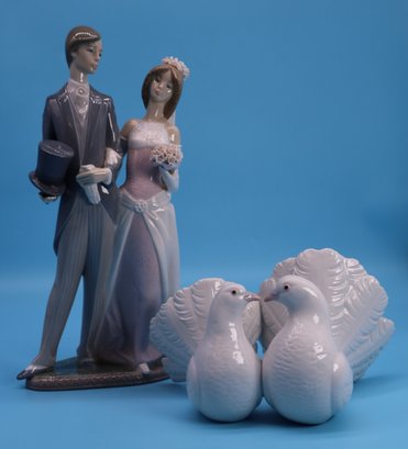 Pair of vintage Lladro glazed doves in nice condition - 5"H