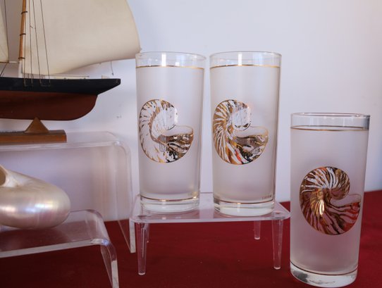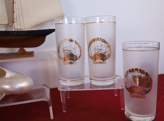Three nautical-themed M/C glasses - 6" H