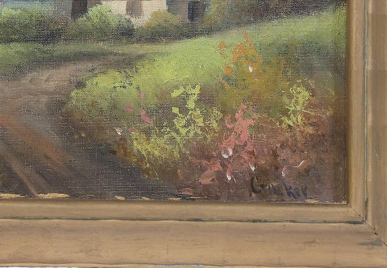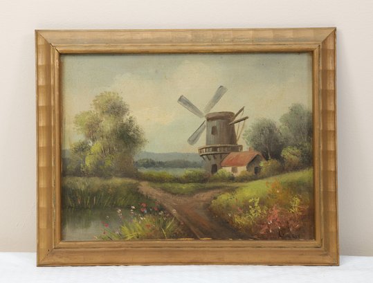 Oil painting of a windmill scene signed lower right by Crocker.