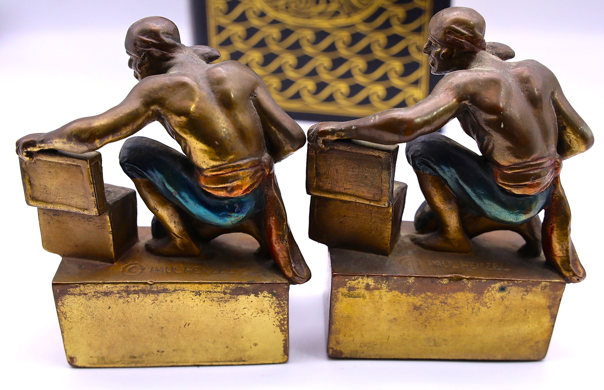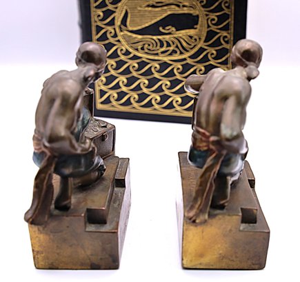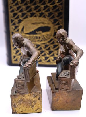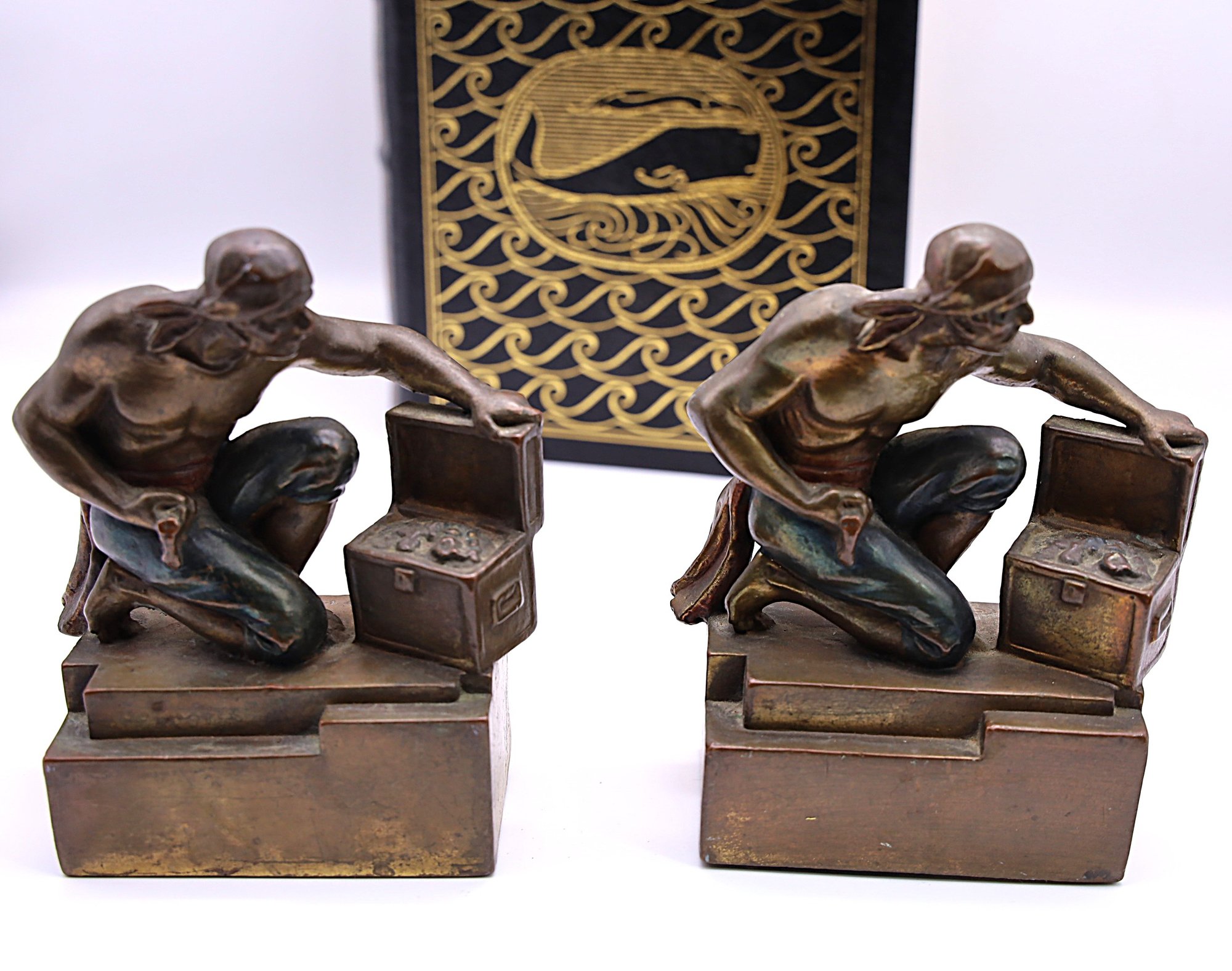 Paul Herzel bronze-clad pirate bookends. 5"Hx 4"W x 2"D