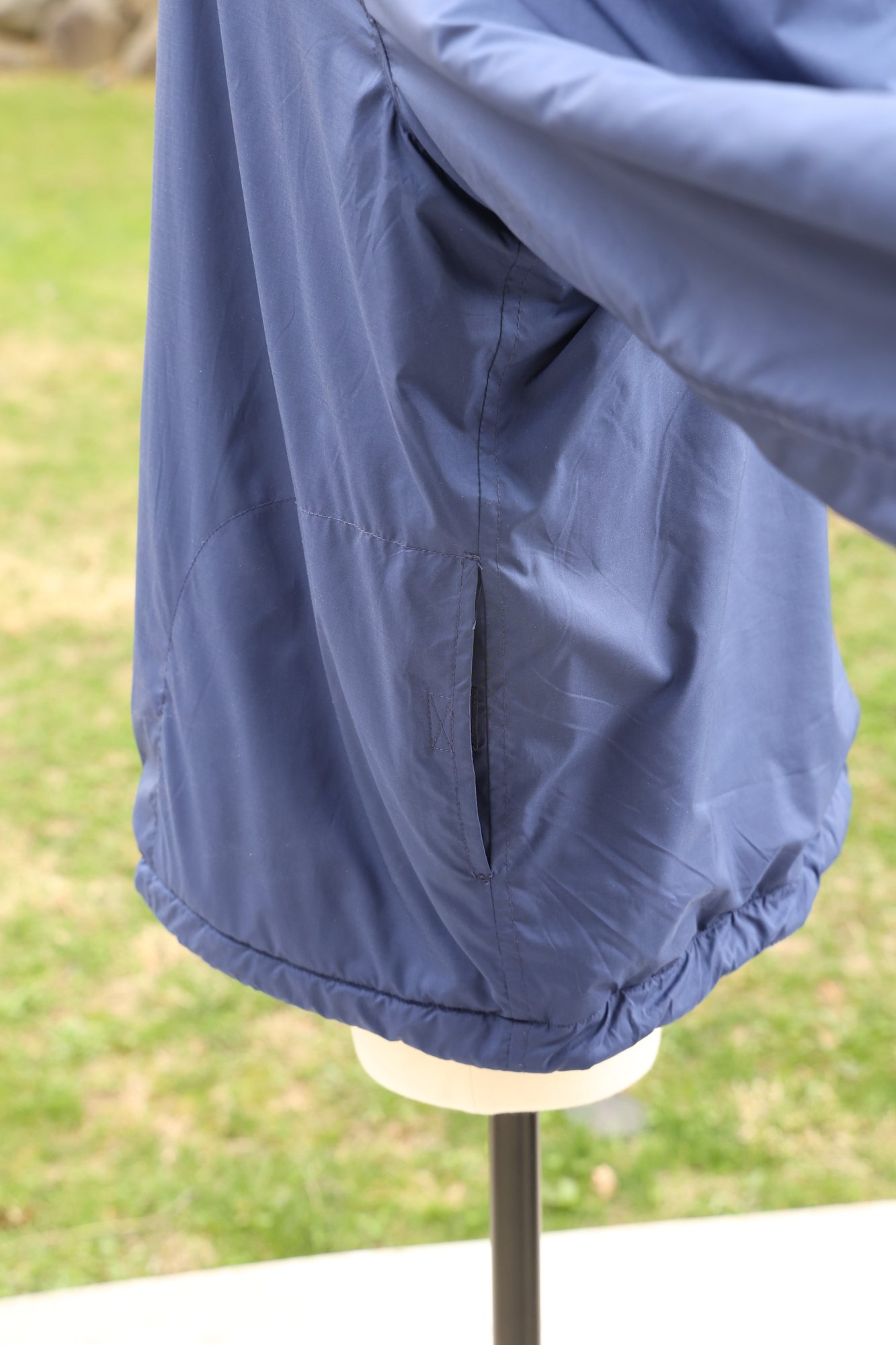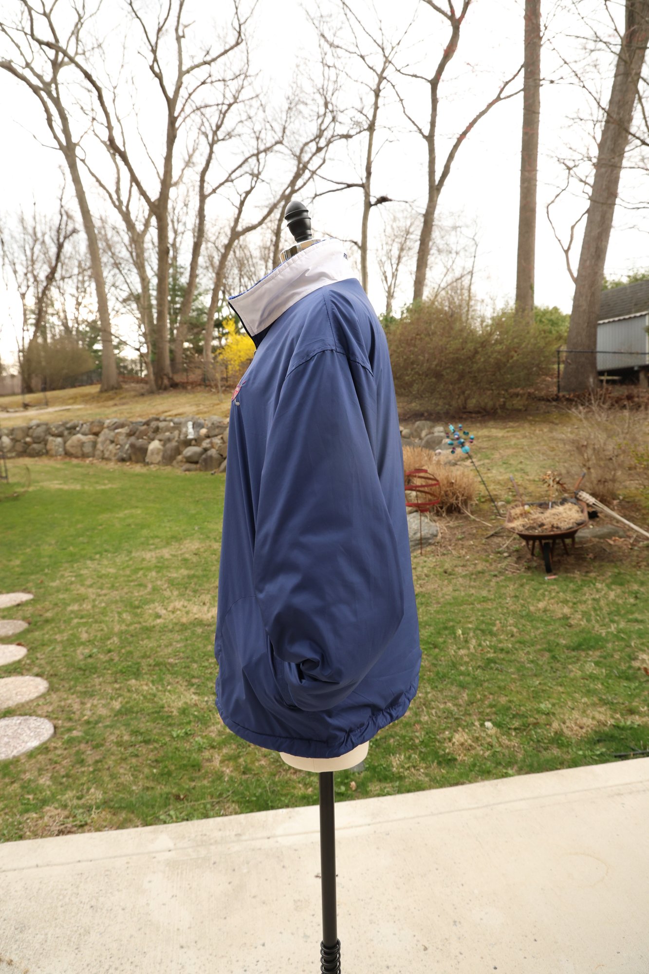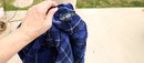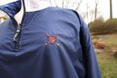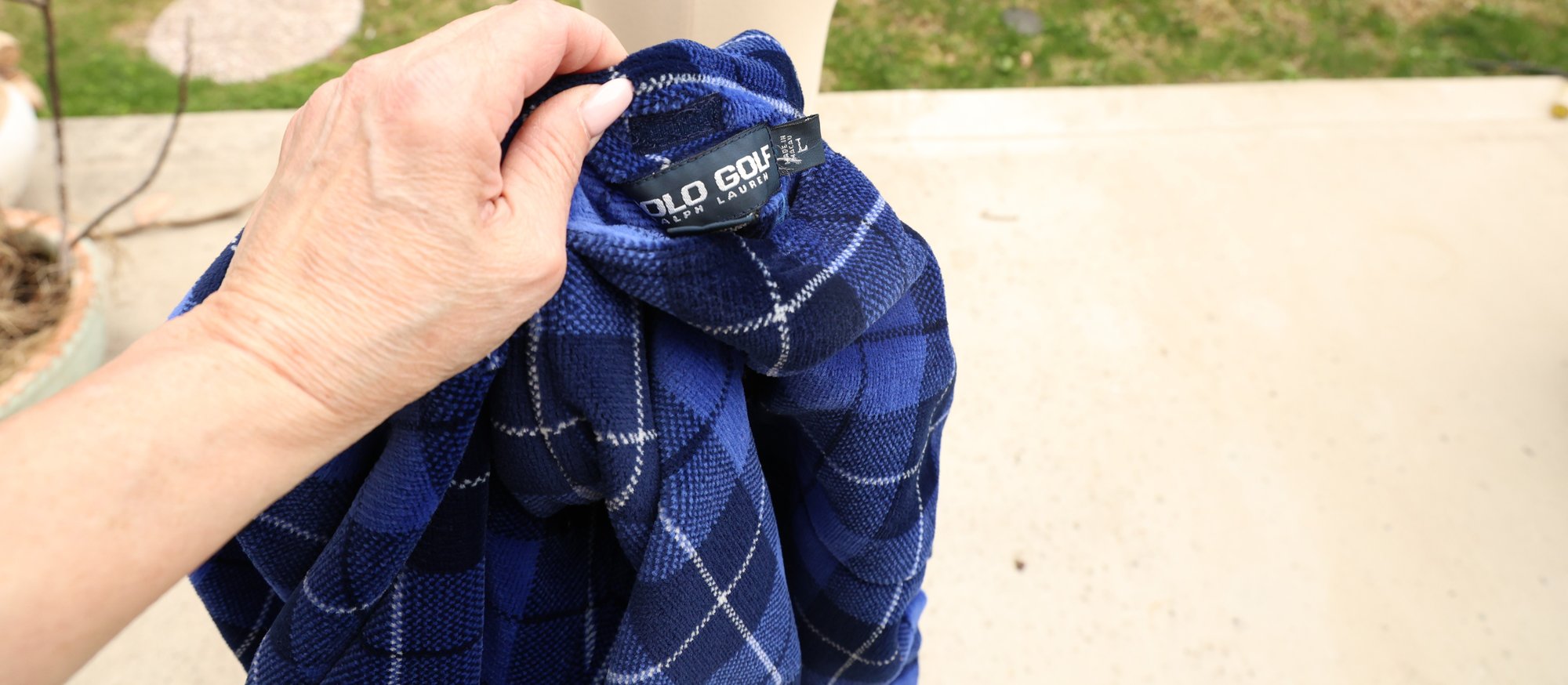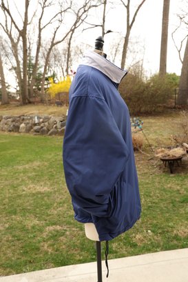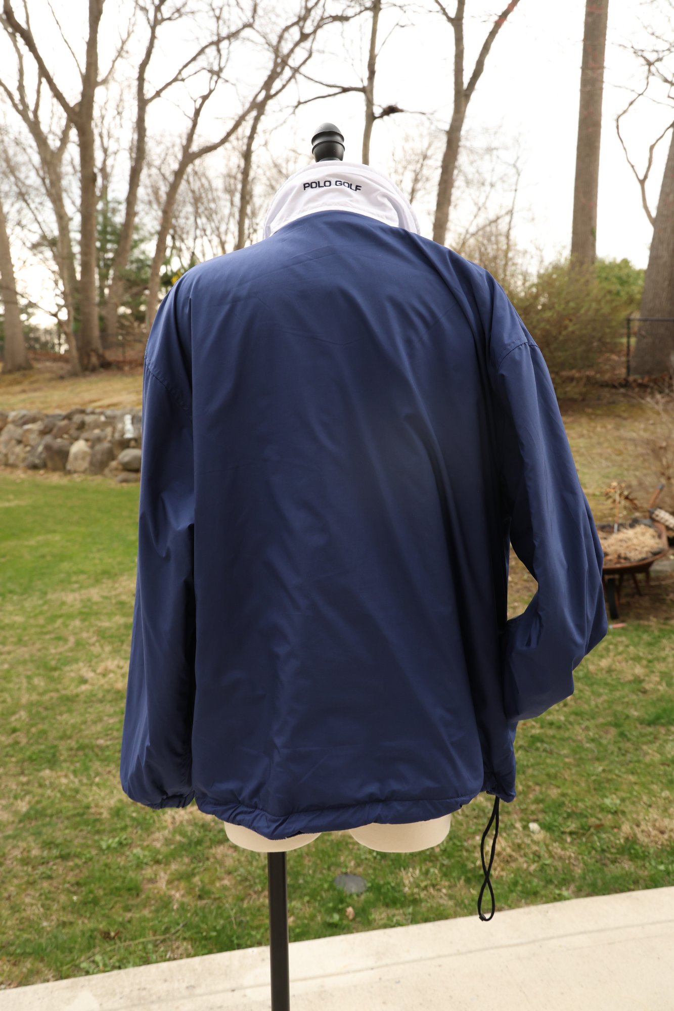 Stylish blue plaid reversible pullover by Polo Golf. Features a half-zip design with drawstring for custom fit.