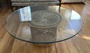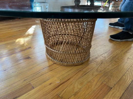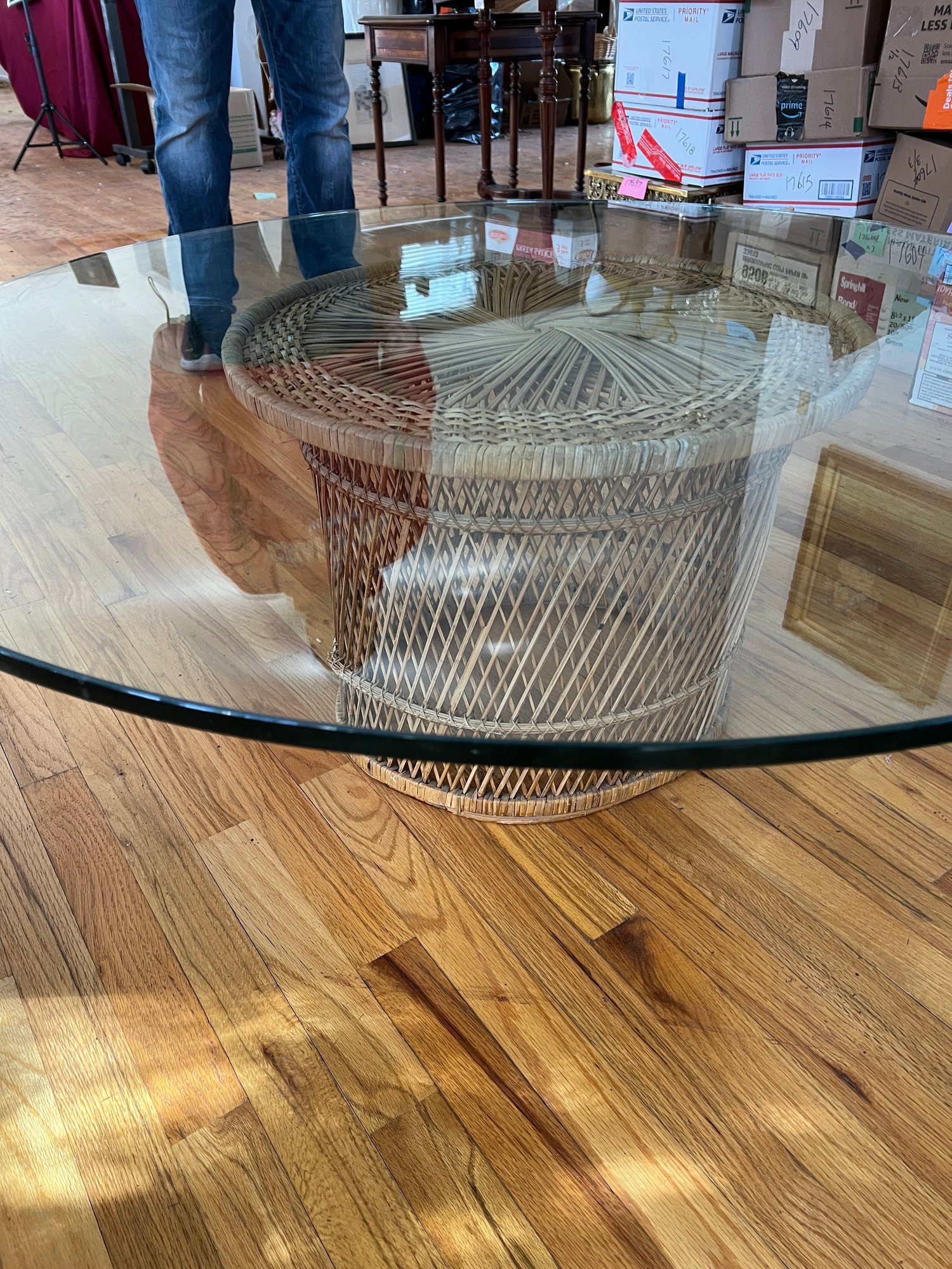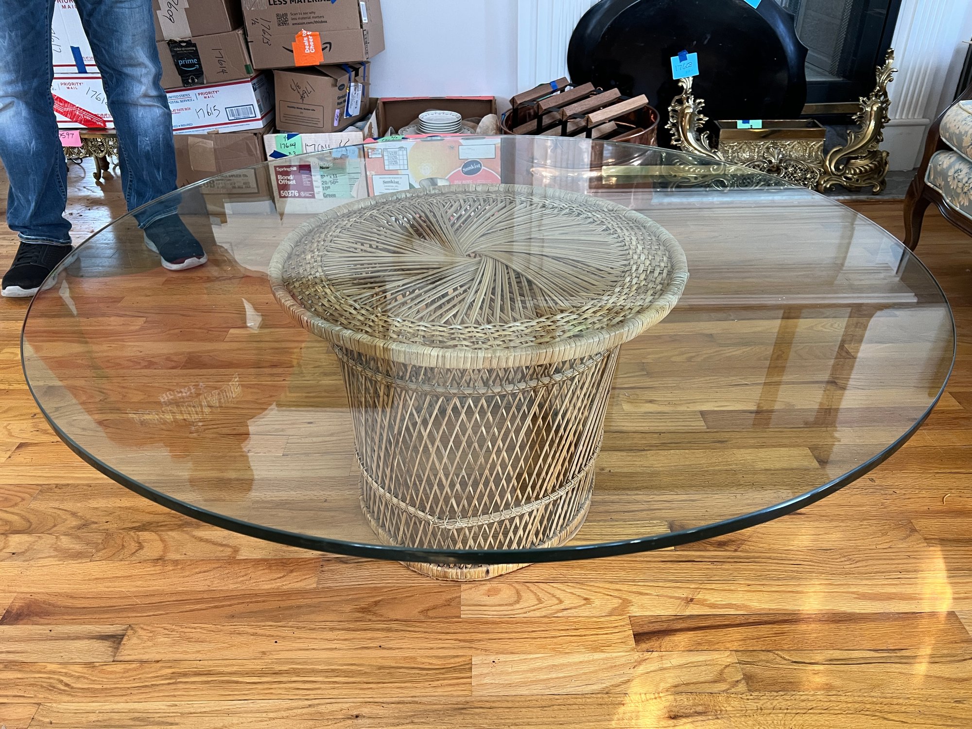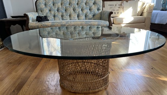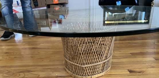 Drum-shaped pedestal support. Center of piece has twisted weaving - 44'D