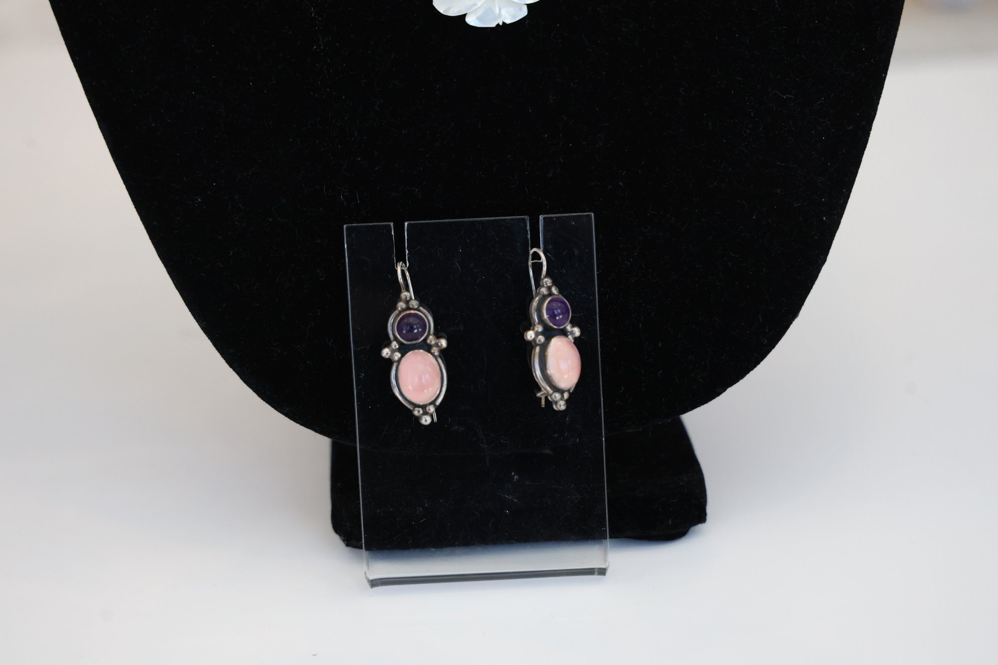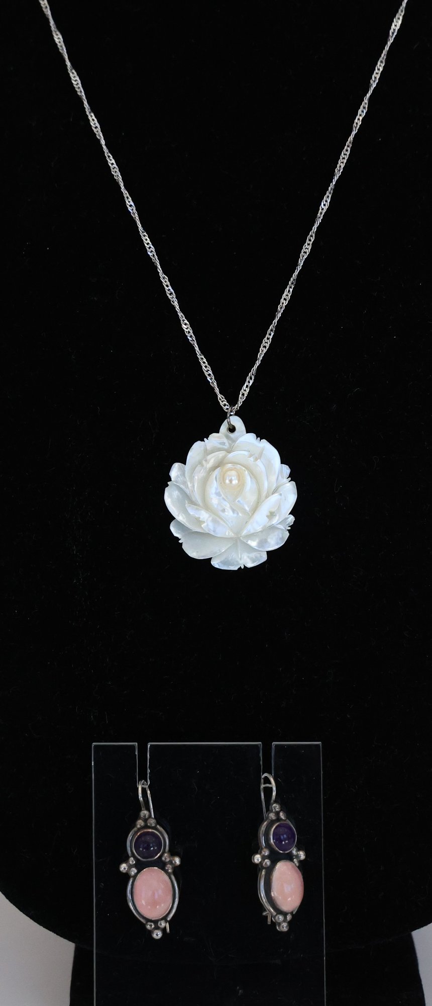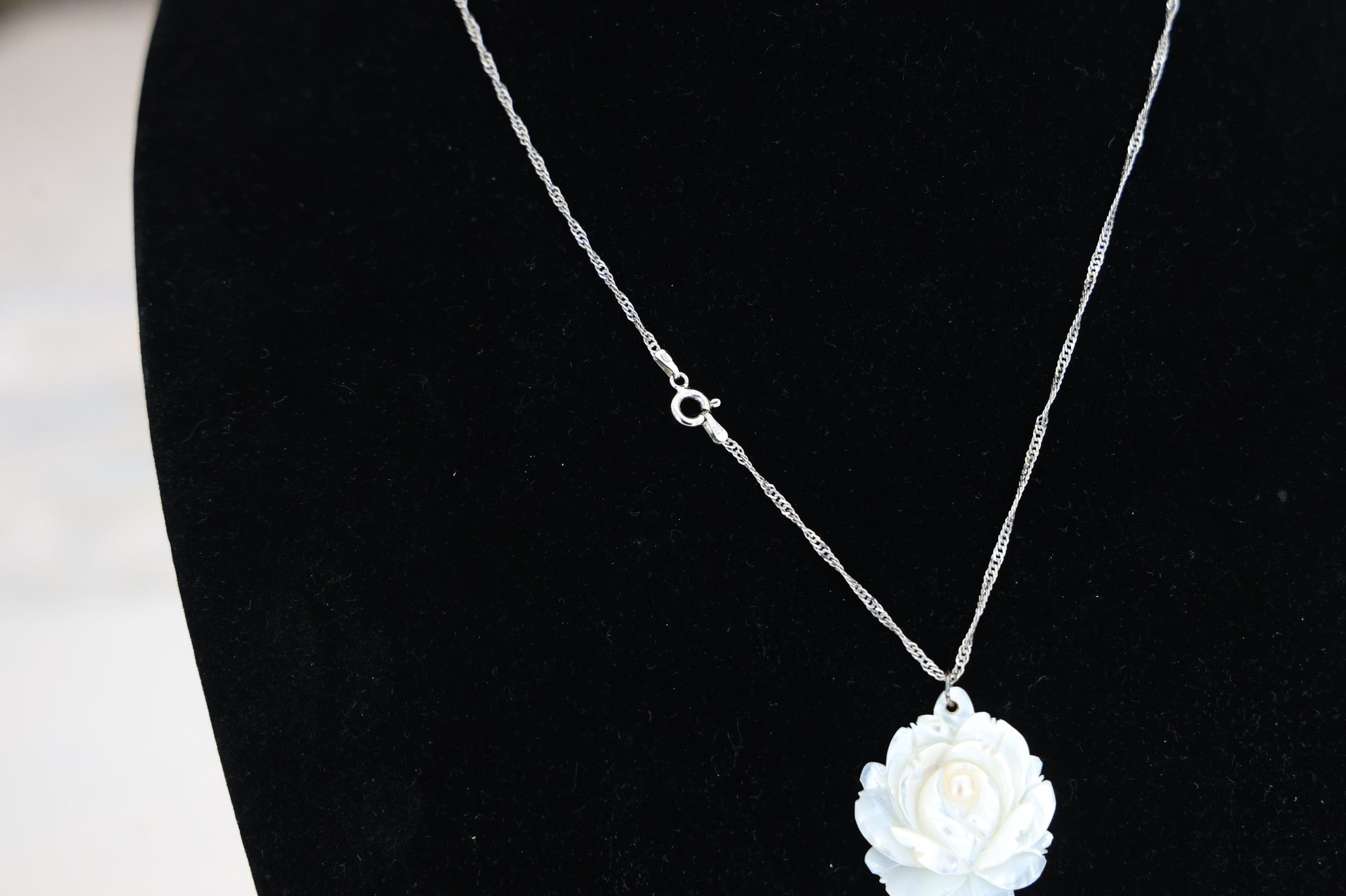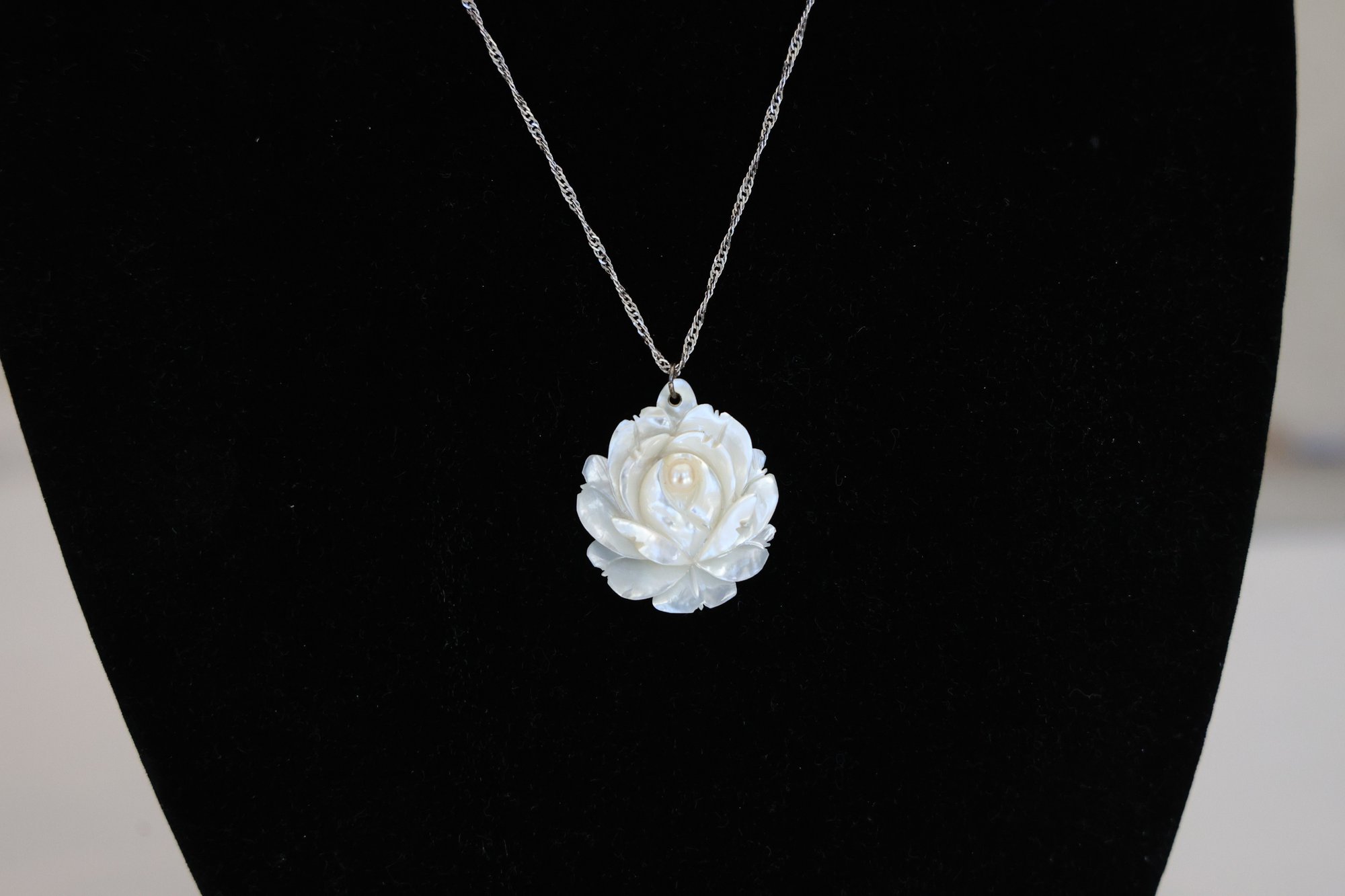Sterling necklace mother of pearl rose 18"L