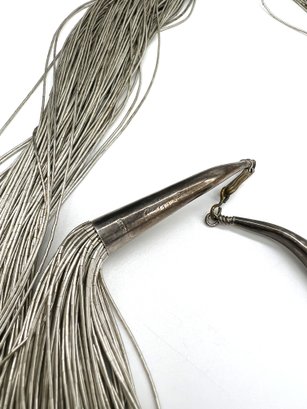 Vintage Sterling Multi Strand Liquid Silver Necklace 28"L