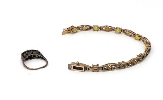 sterling opal bracelet 7"L