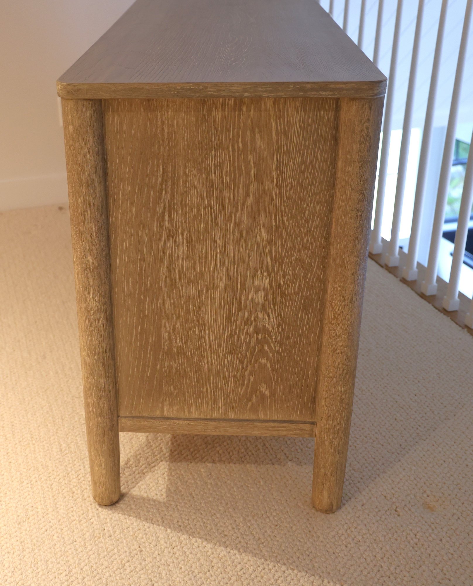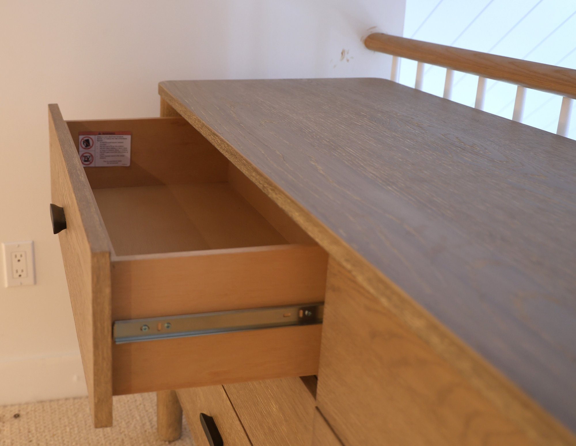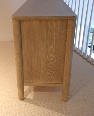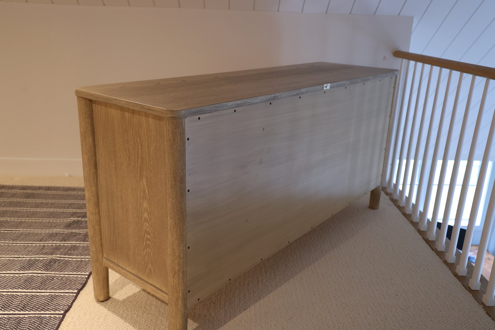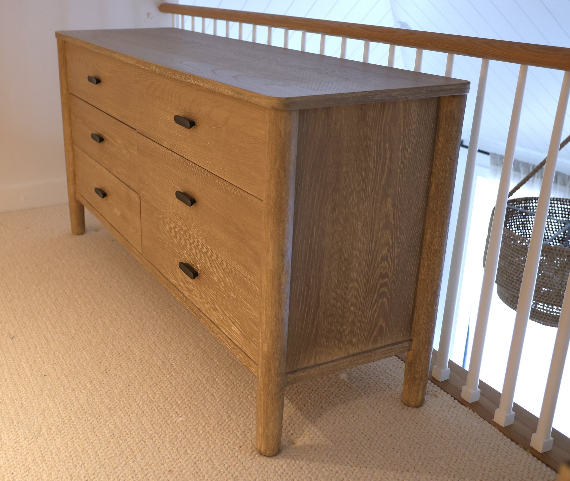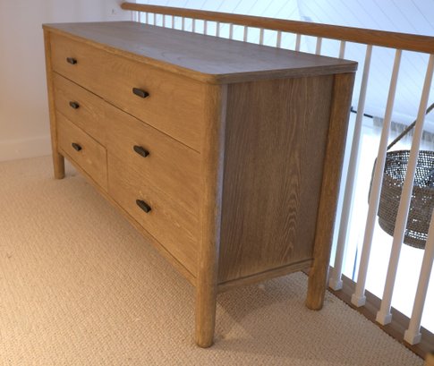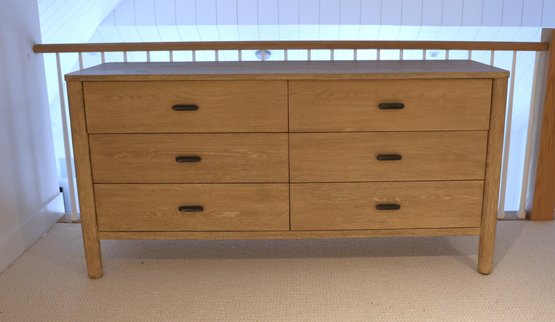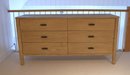 Mahogany and white oak veneer covered in Dune finish in color. Six drawers glide in and out nicely.