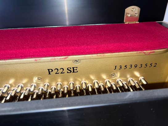 Designed for durability and responsive touch,. Features a spruce soundboard and ribs for a rich tone. The P22 is the only Yamaha upright featuring two locks, one on the fallboard and one on the lid, to keep the instrument safe when not in use.