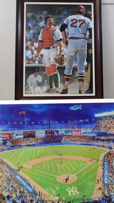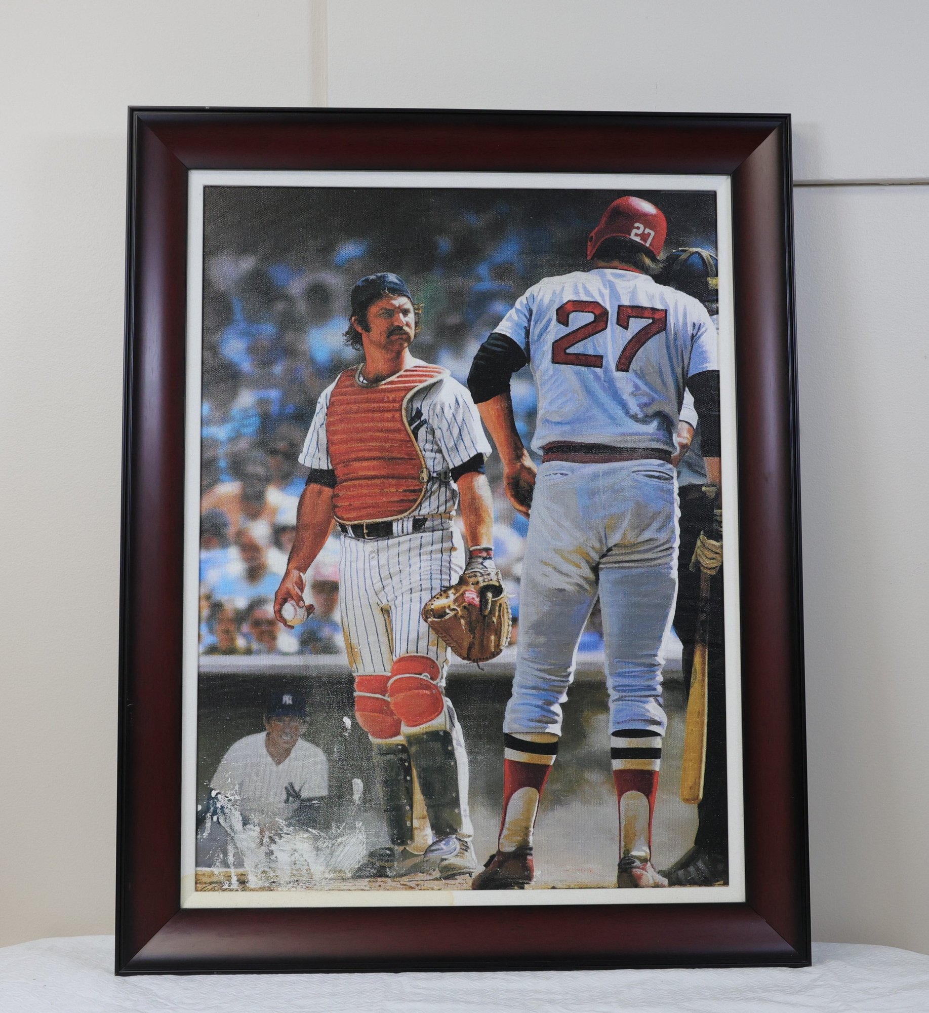 Thurman Munson print on canvas - 24.5" x 17.5", framed 22.5" x 28.5"