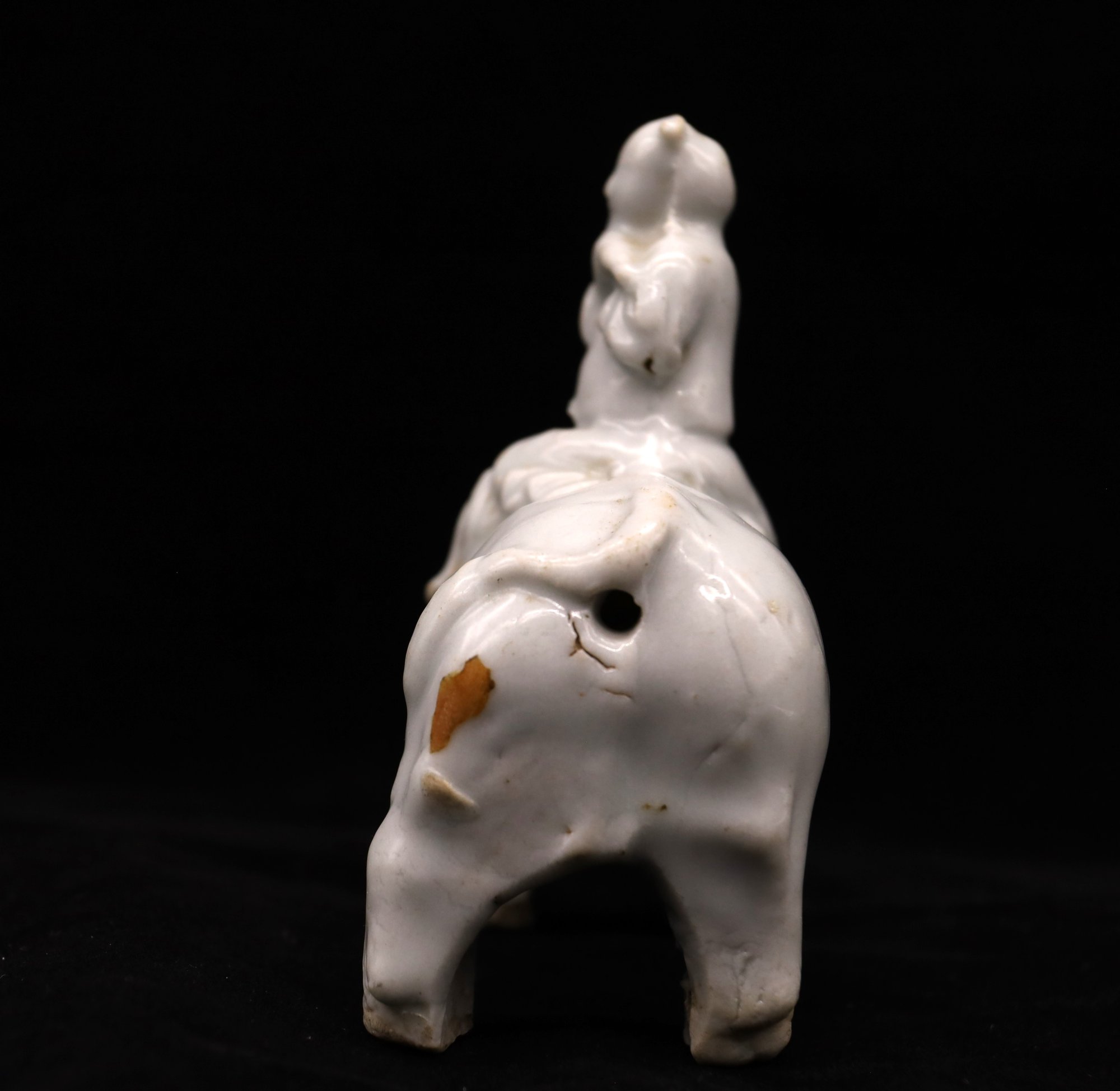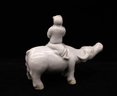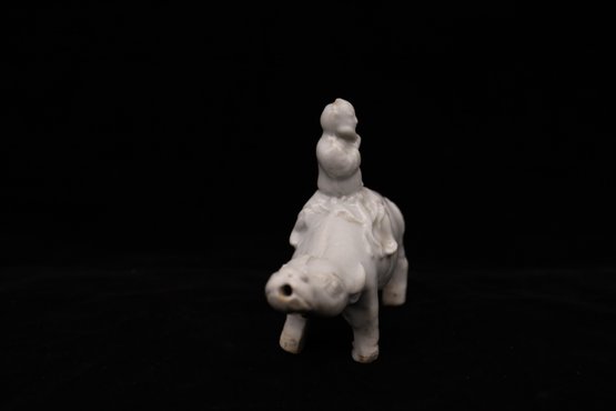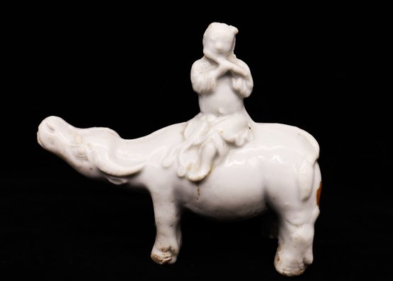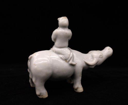 Glazed porcelain Quibai-ware Water Buffalo With Chinese Figure on top riding the buffalo and playing the flute.
