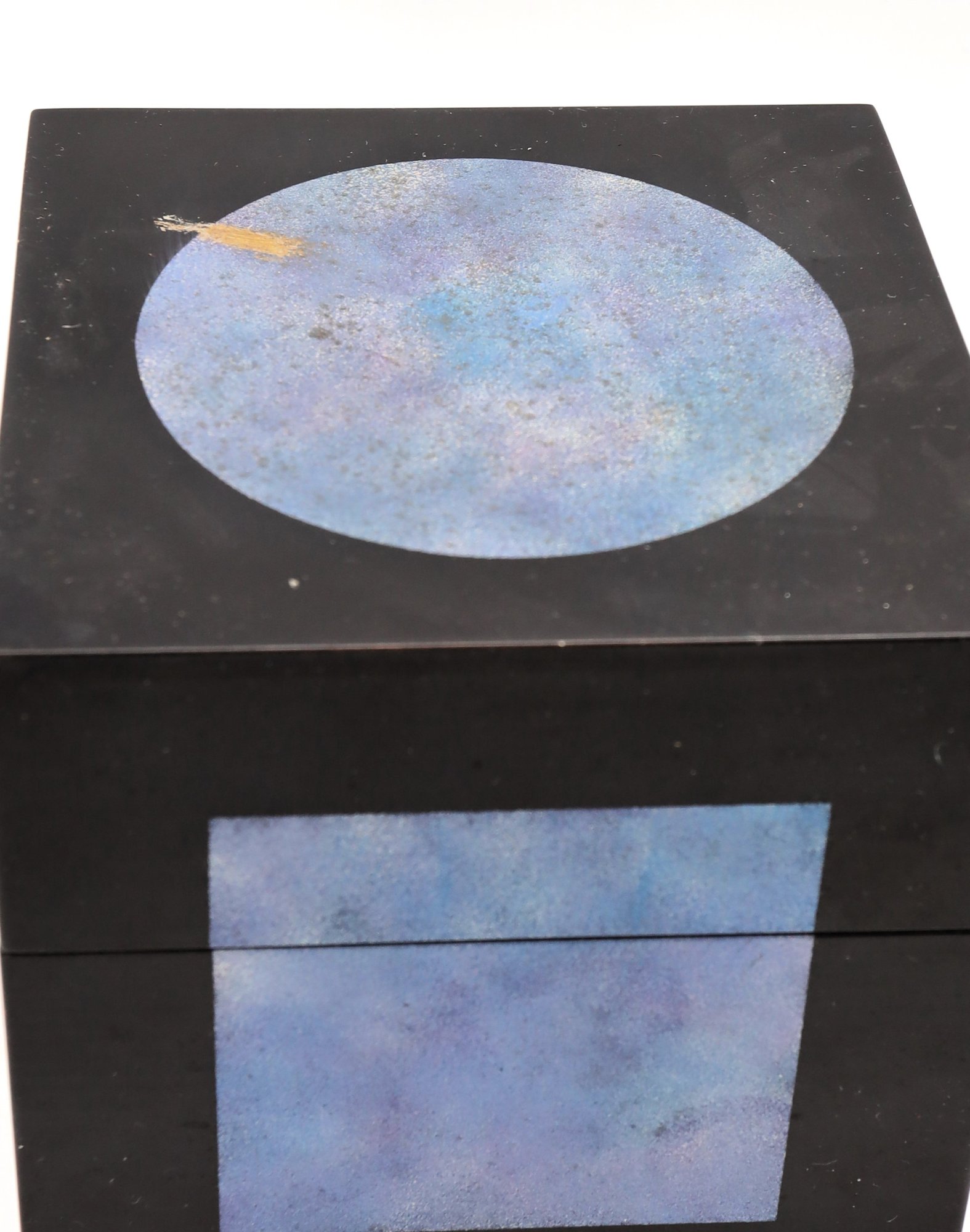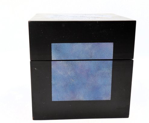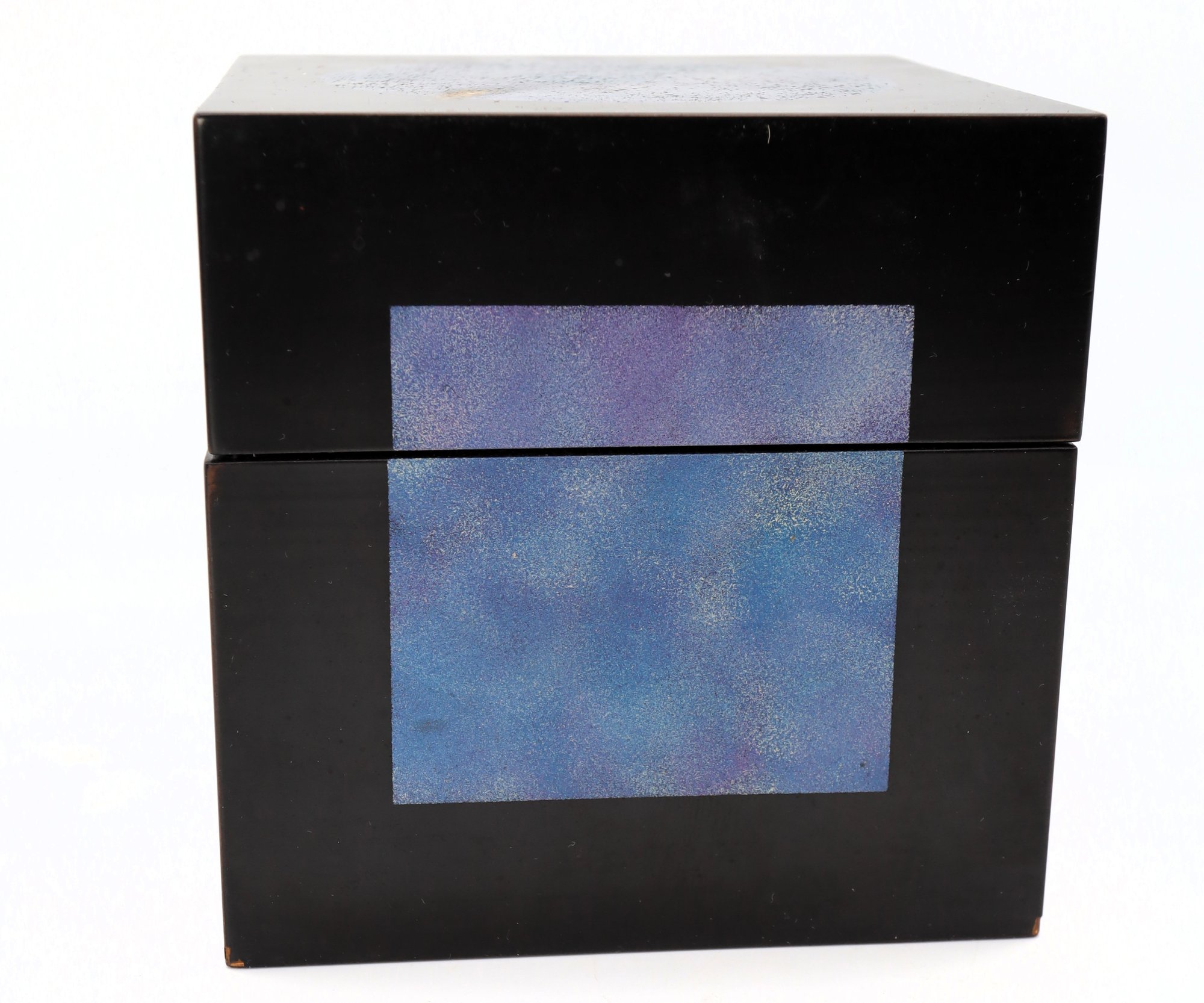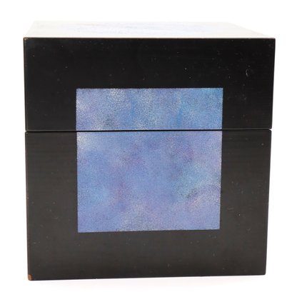 Japanese Yuji Kubo Lacquerware Box. Beautiful black and sky blue outside with bright purple inside.