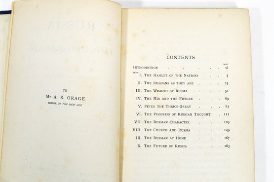 First edition (1916) political and historical study of pre-revolutionary Russia by C. E. Bechhofer, with introduction by A. H. Murray. Published London/New York. Original blue cloth binding with gilt spine.