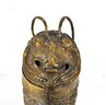 Condition: Good antique condition with age-related wear, surface patina, and minor seam cracks consistent with hammered copper alloy construction. Hinged lid present and functioning.
