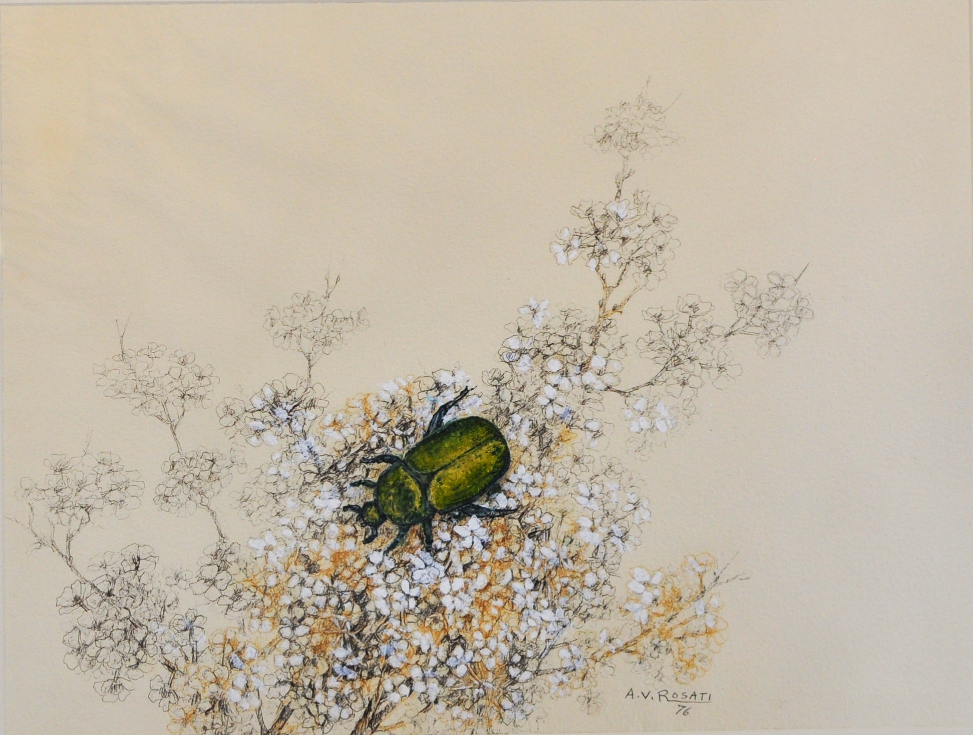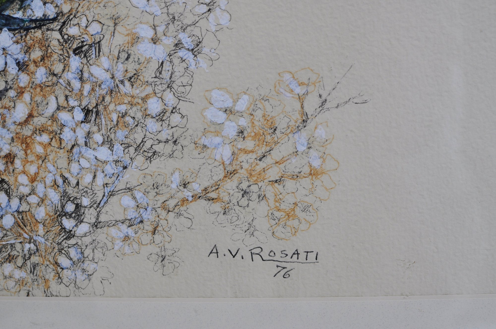 Delicate mixed media drawing by A. V. Rosati, signed and dated 1976 lower right.