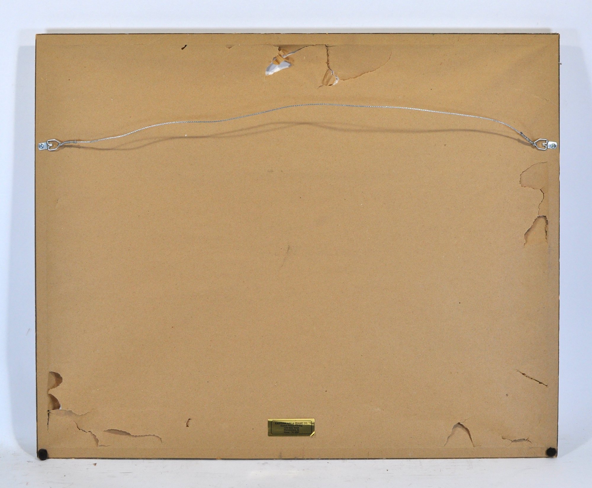 Condition shows light age wear to paper and frame; backing with minor losses.