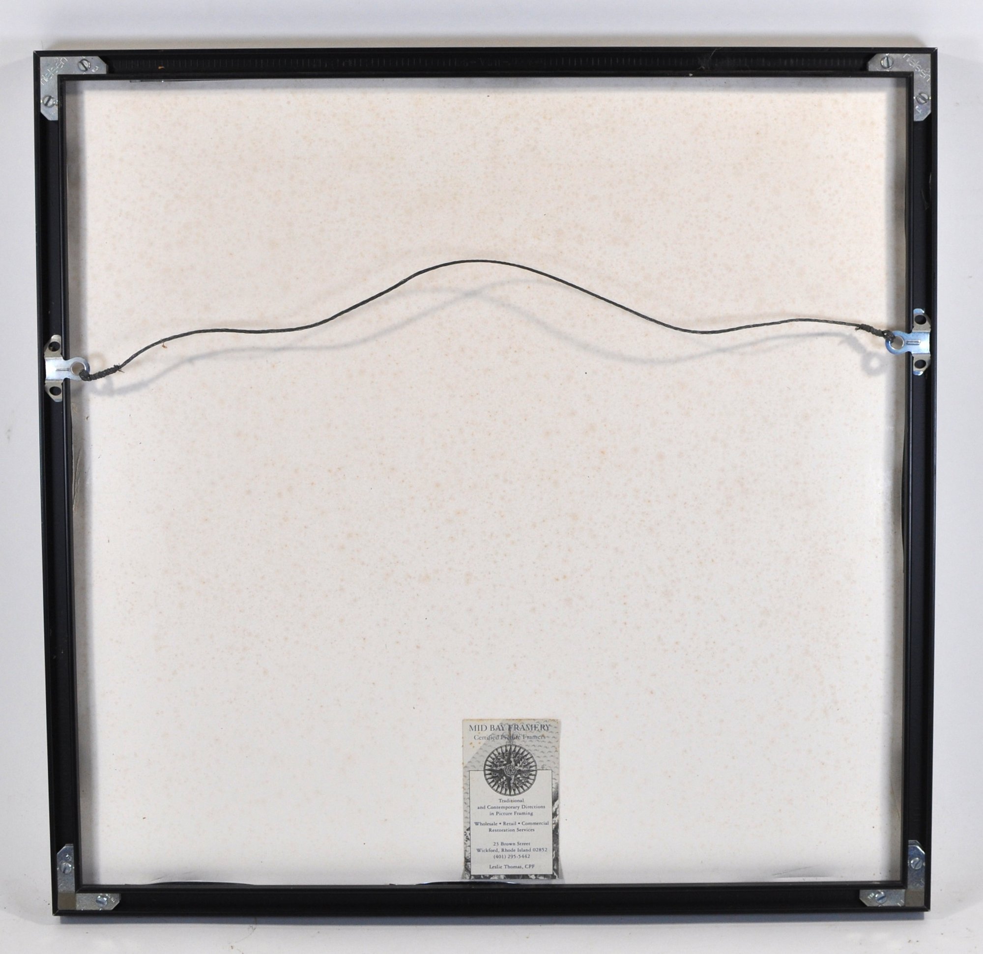 Professionally matted and housed in a modern black metal frame with Mid Bay Framing label on verso.