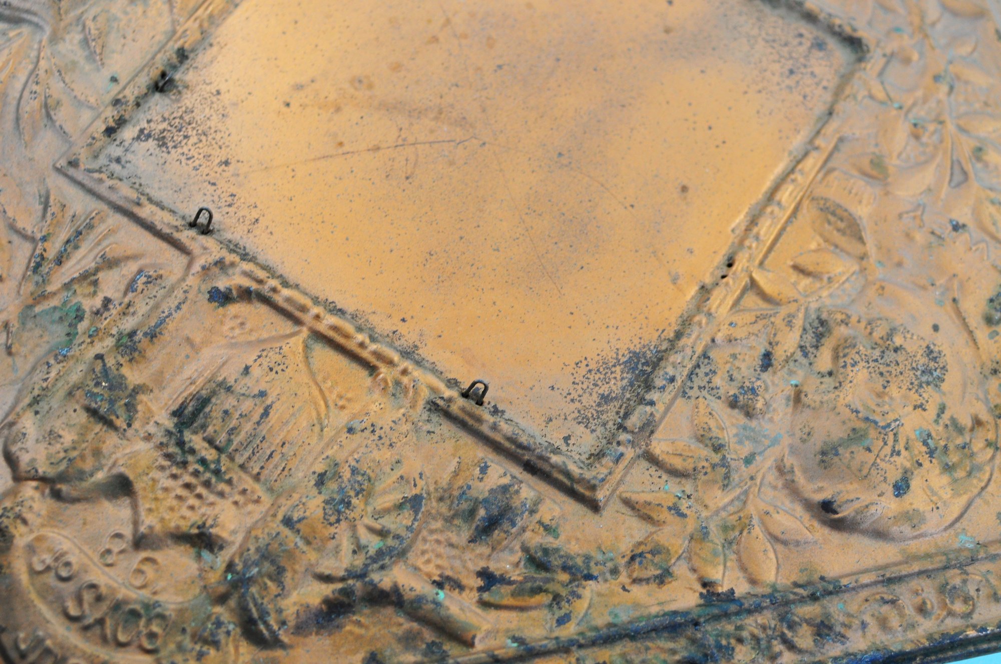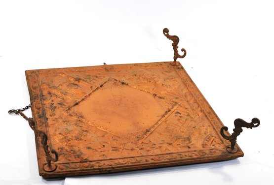 Condition: Honest antique condition with patina, oxidation, scattered spotting, and wear consistent with age. Hooks intact. Missing a mirror. See photos for details.