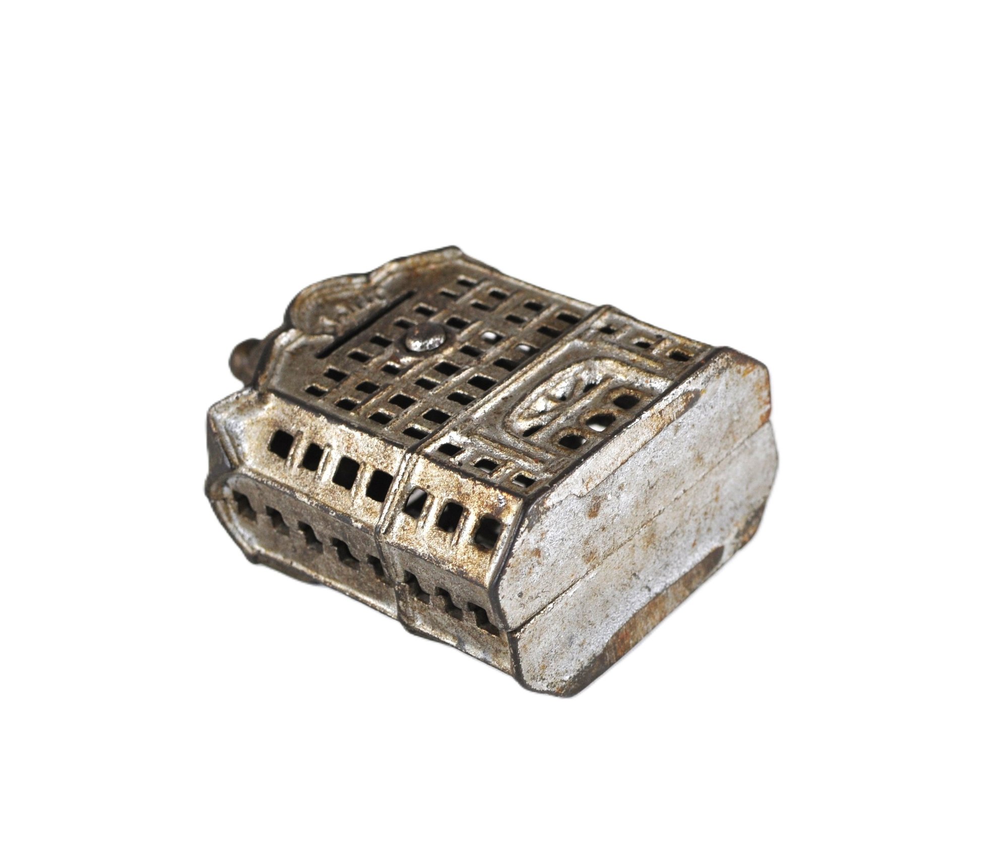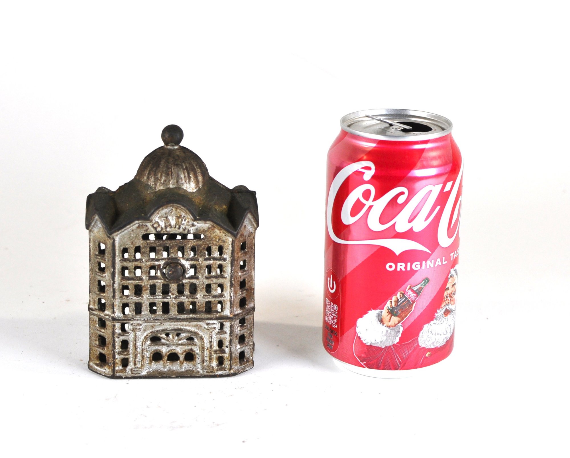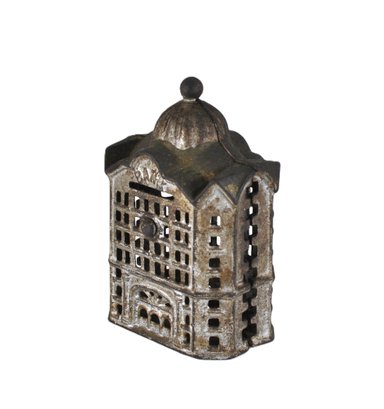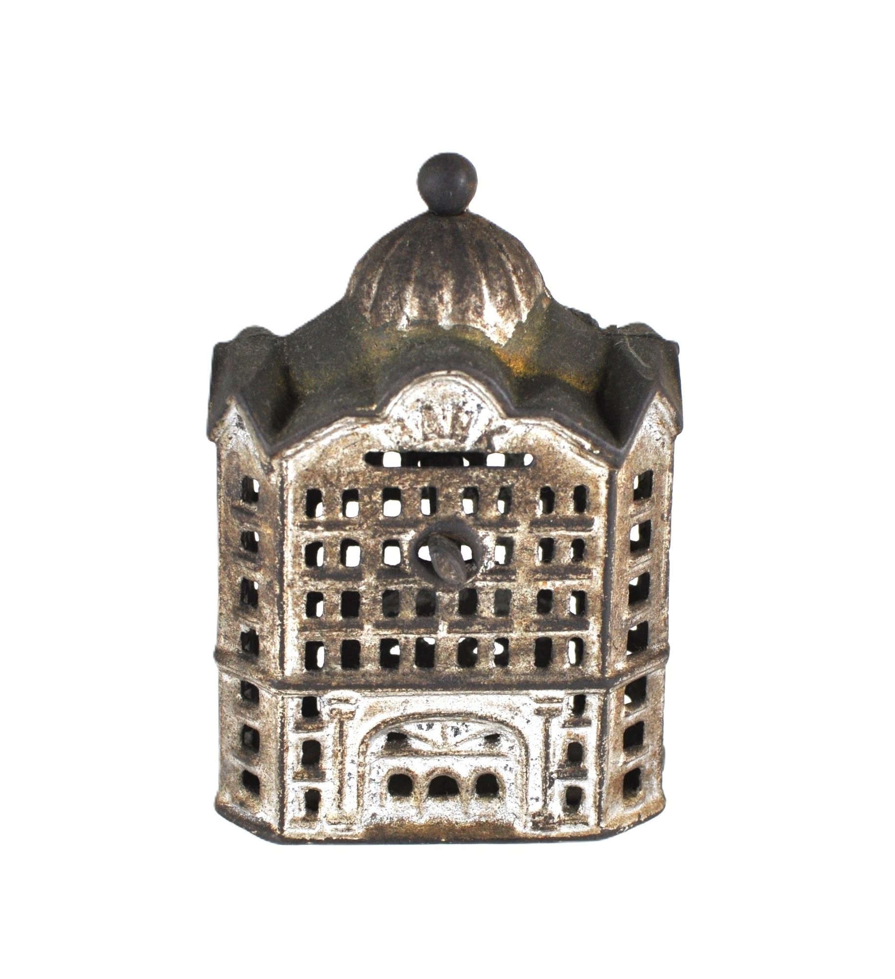 Offered is a charming antique miniature cast iron still bank "Domed Bank",