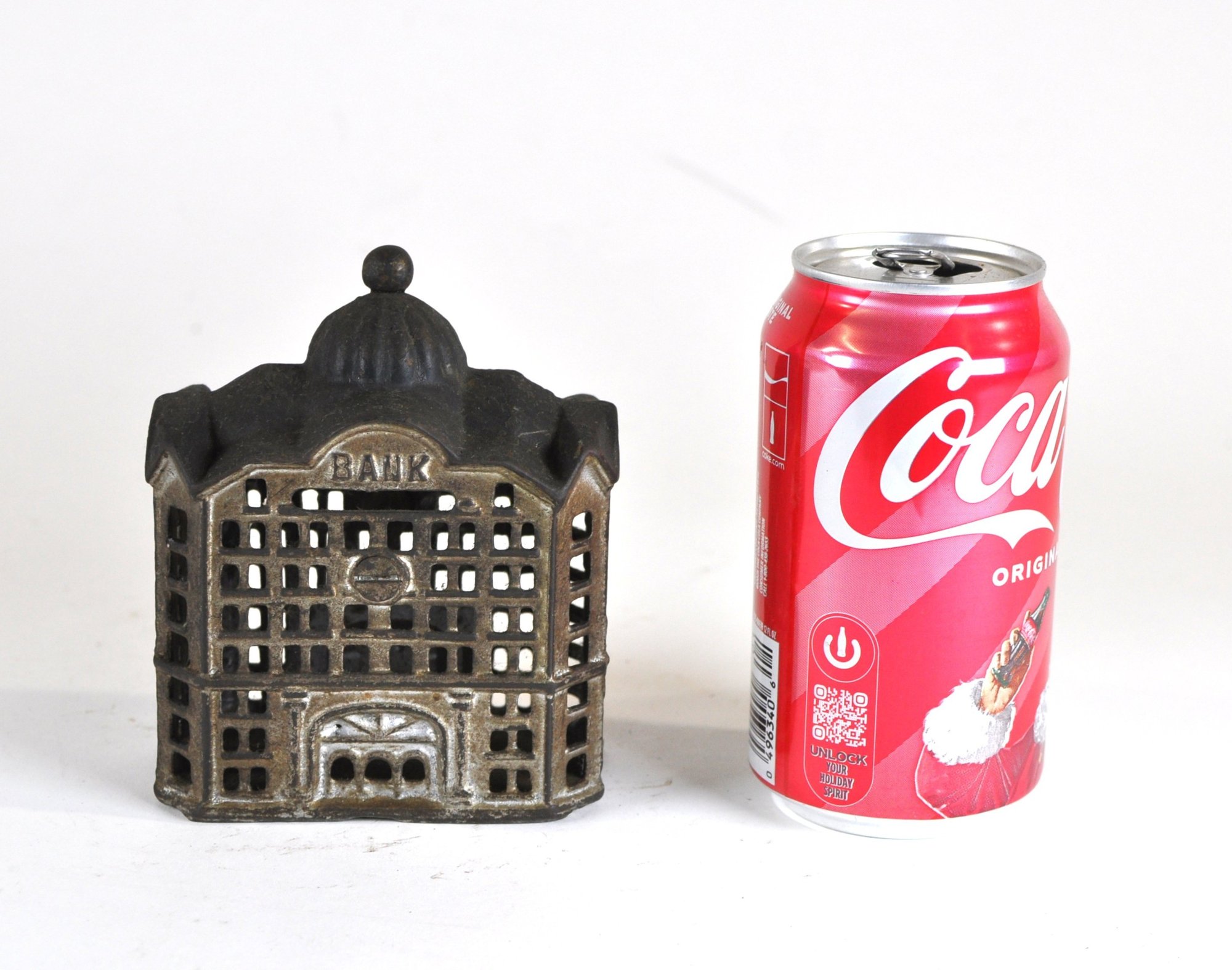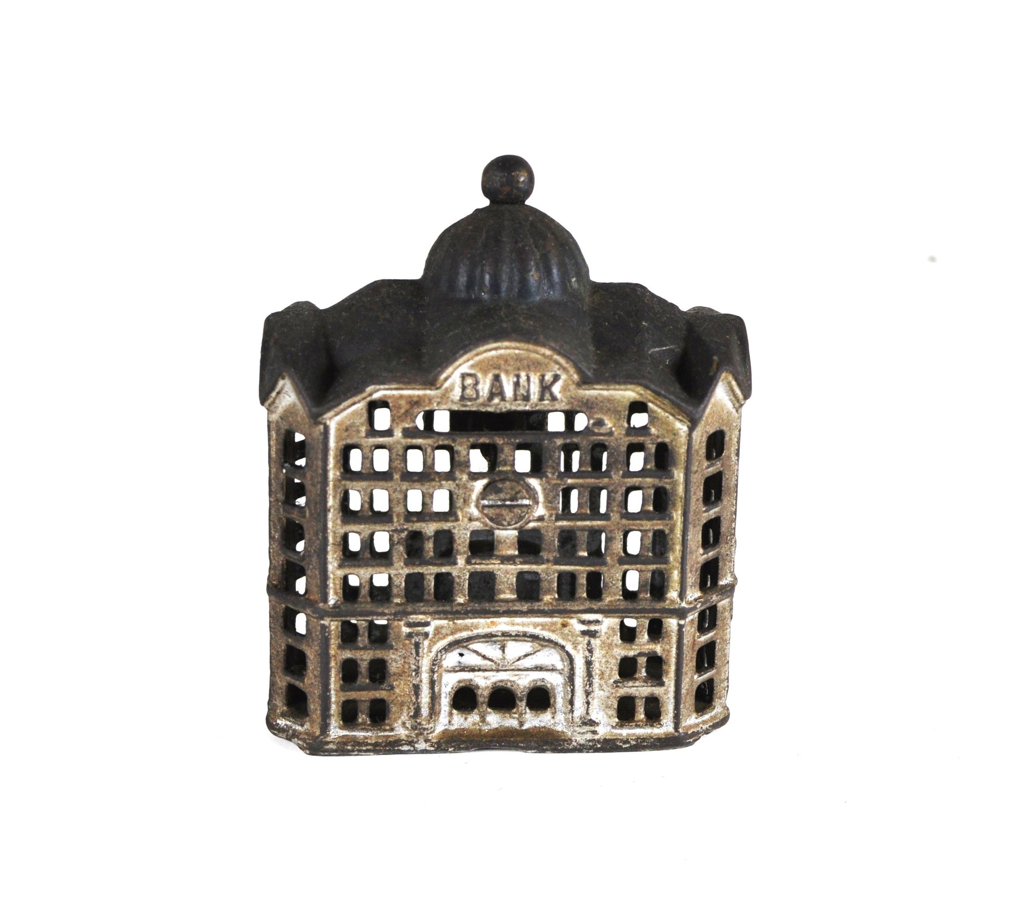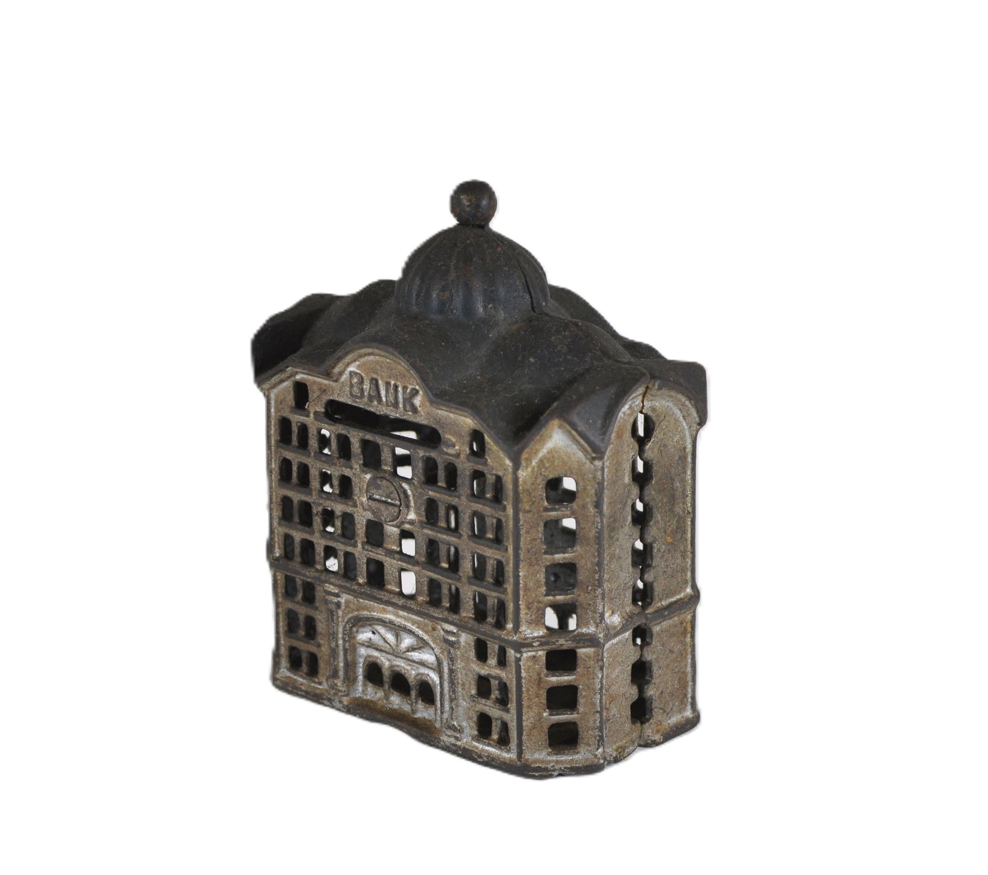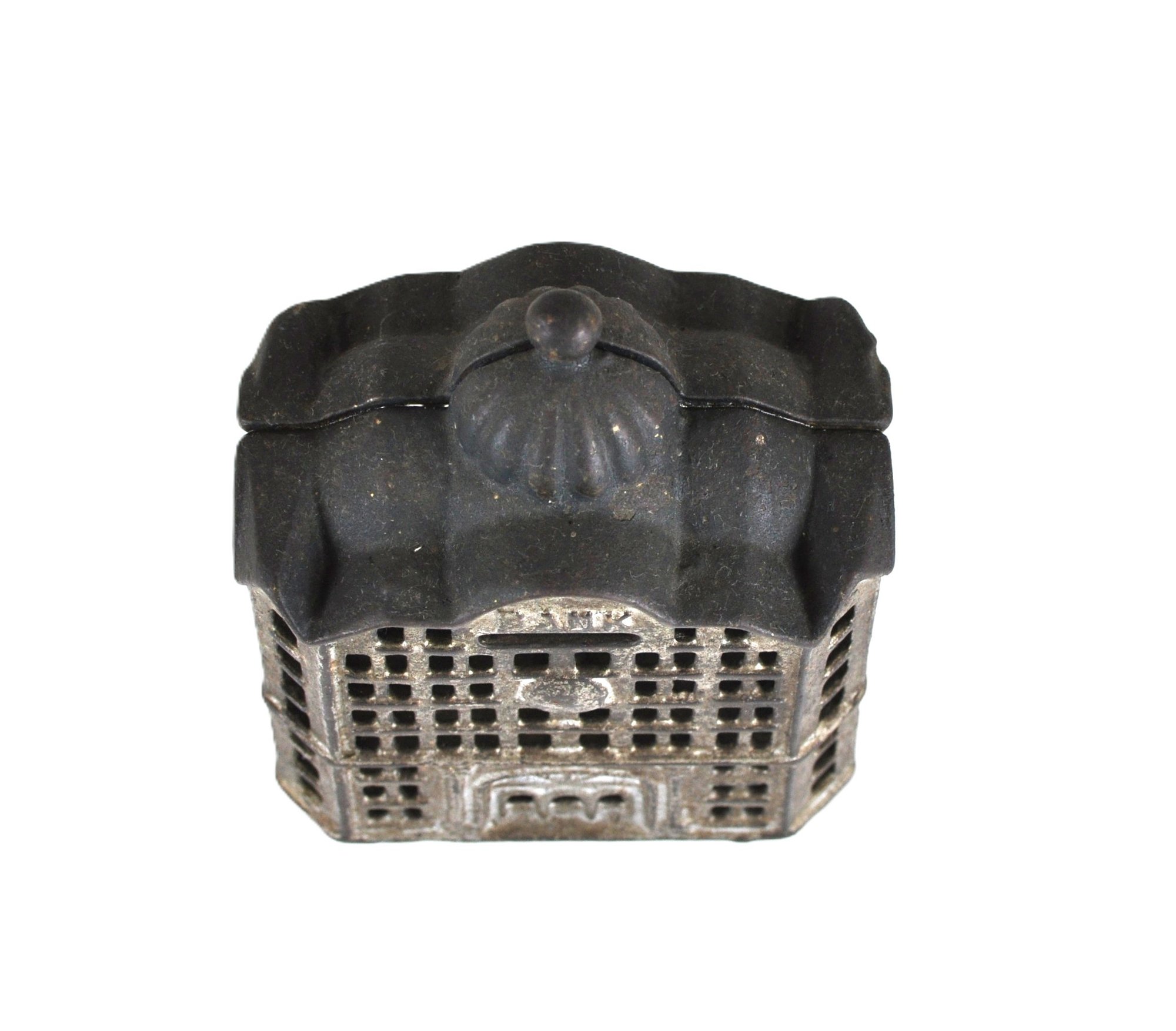 Offered is a charming antique miniature cast iron still bank "Domed Bank",