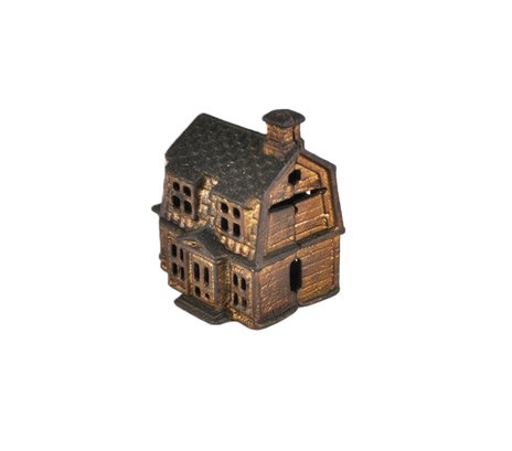 Offered is a charming antique cast iron still bank in the form of a small house/cottage, attributed to A.C. Williams (Arcade Mfg. Co.), well known for their early 20th century cast iron banks.