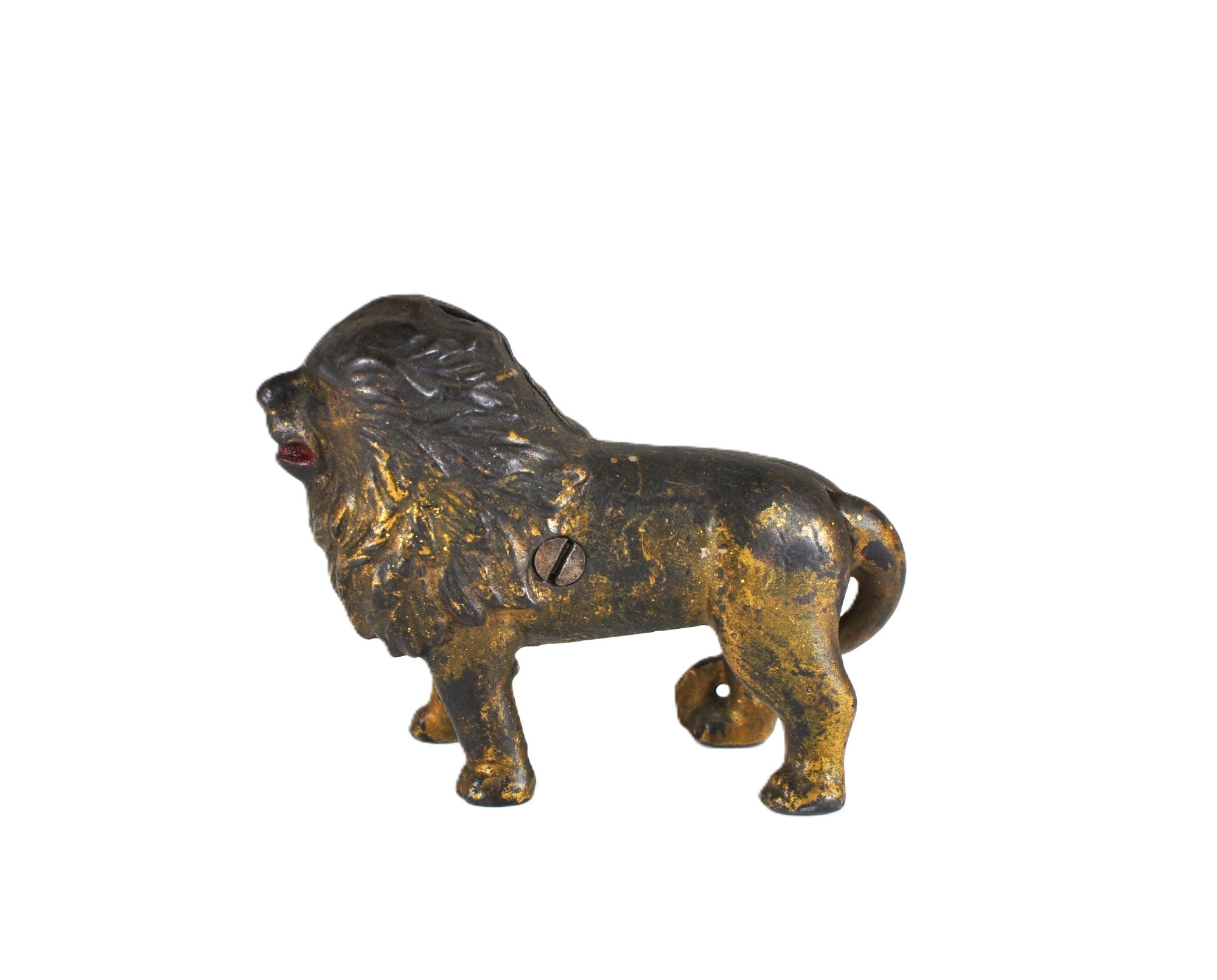 Offered is a charming cast iron lioncoin bank, dating to early 1900's.