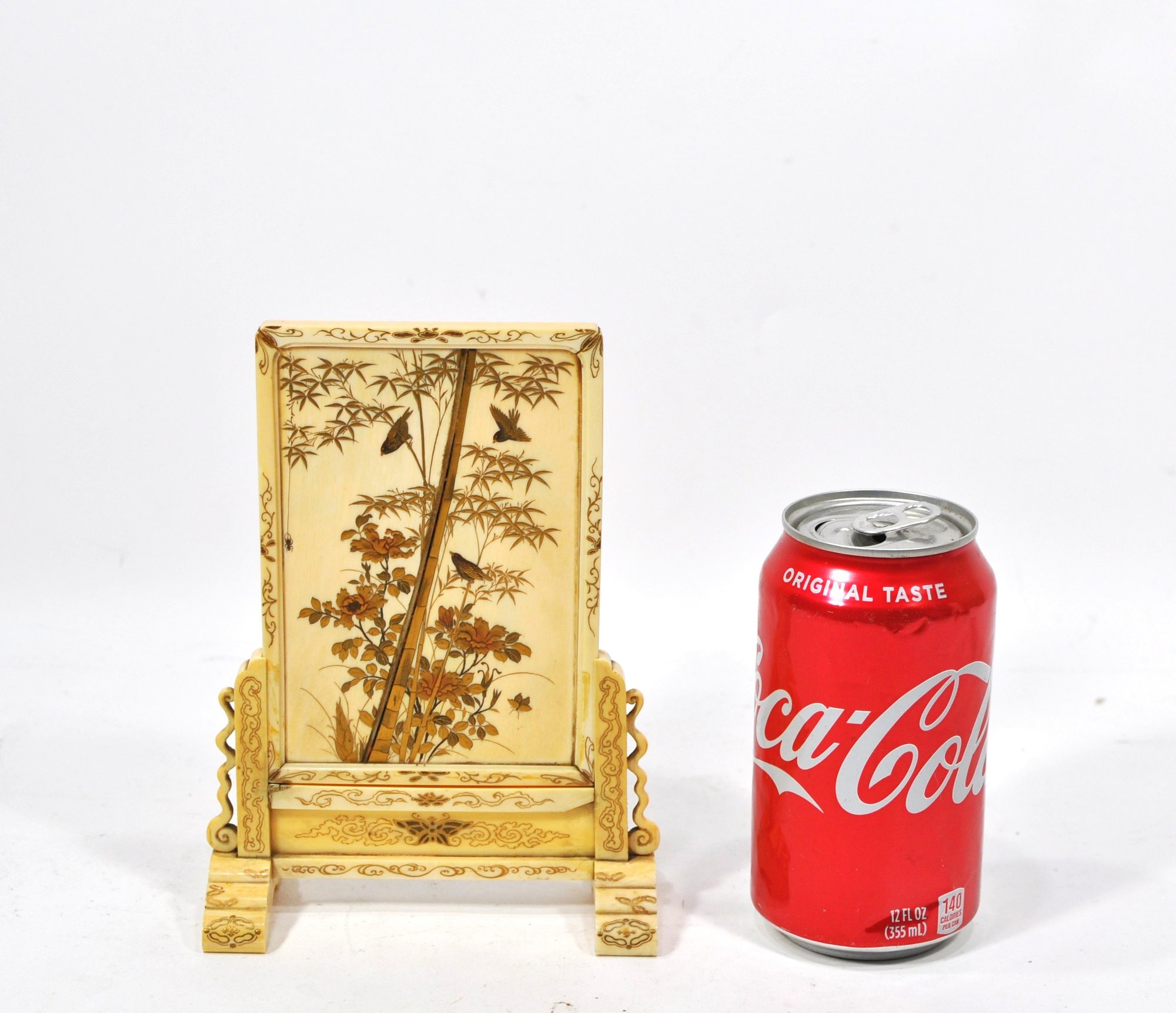 Both sides are beautifully decorated with naturalistic scenes.