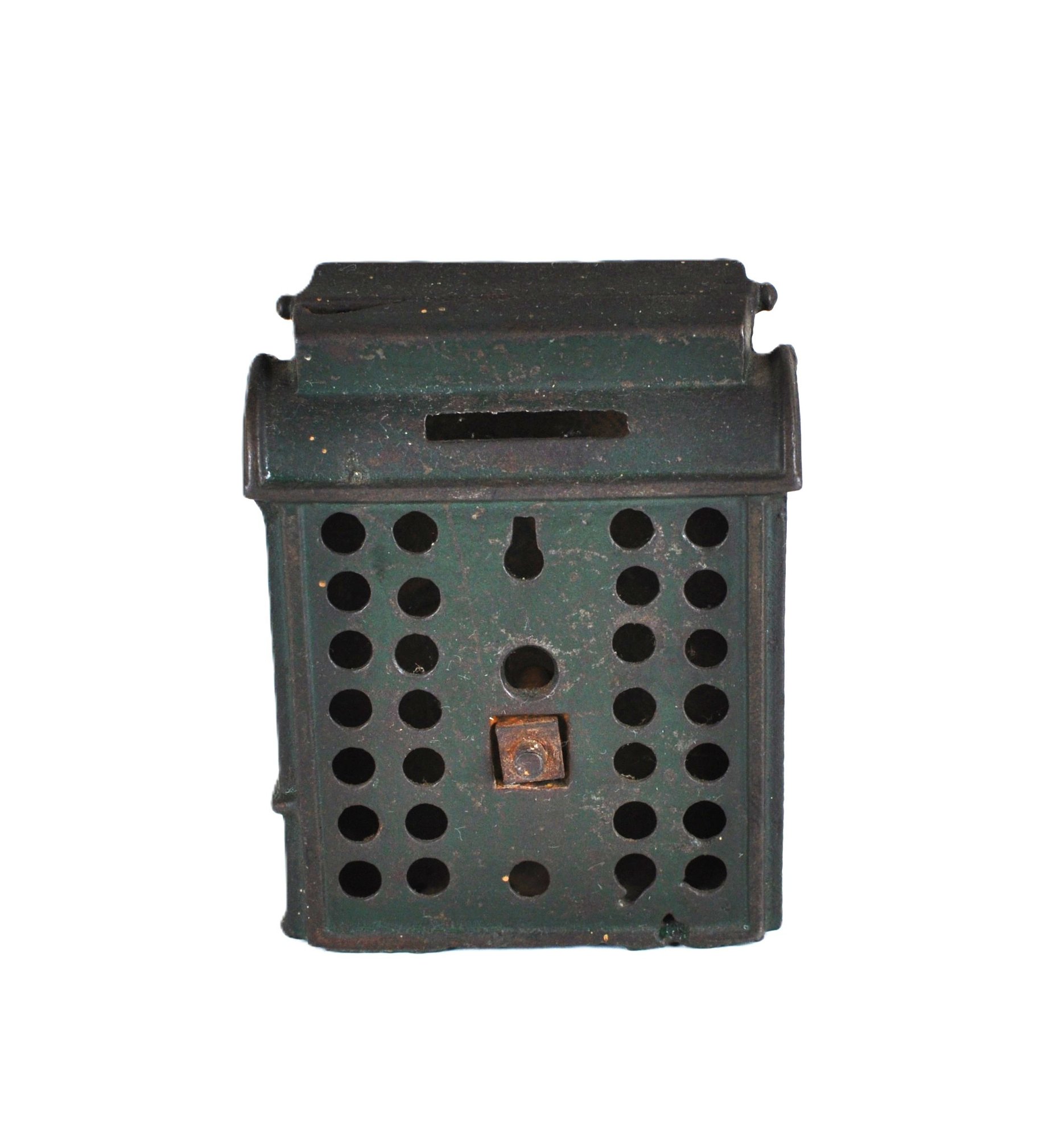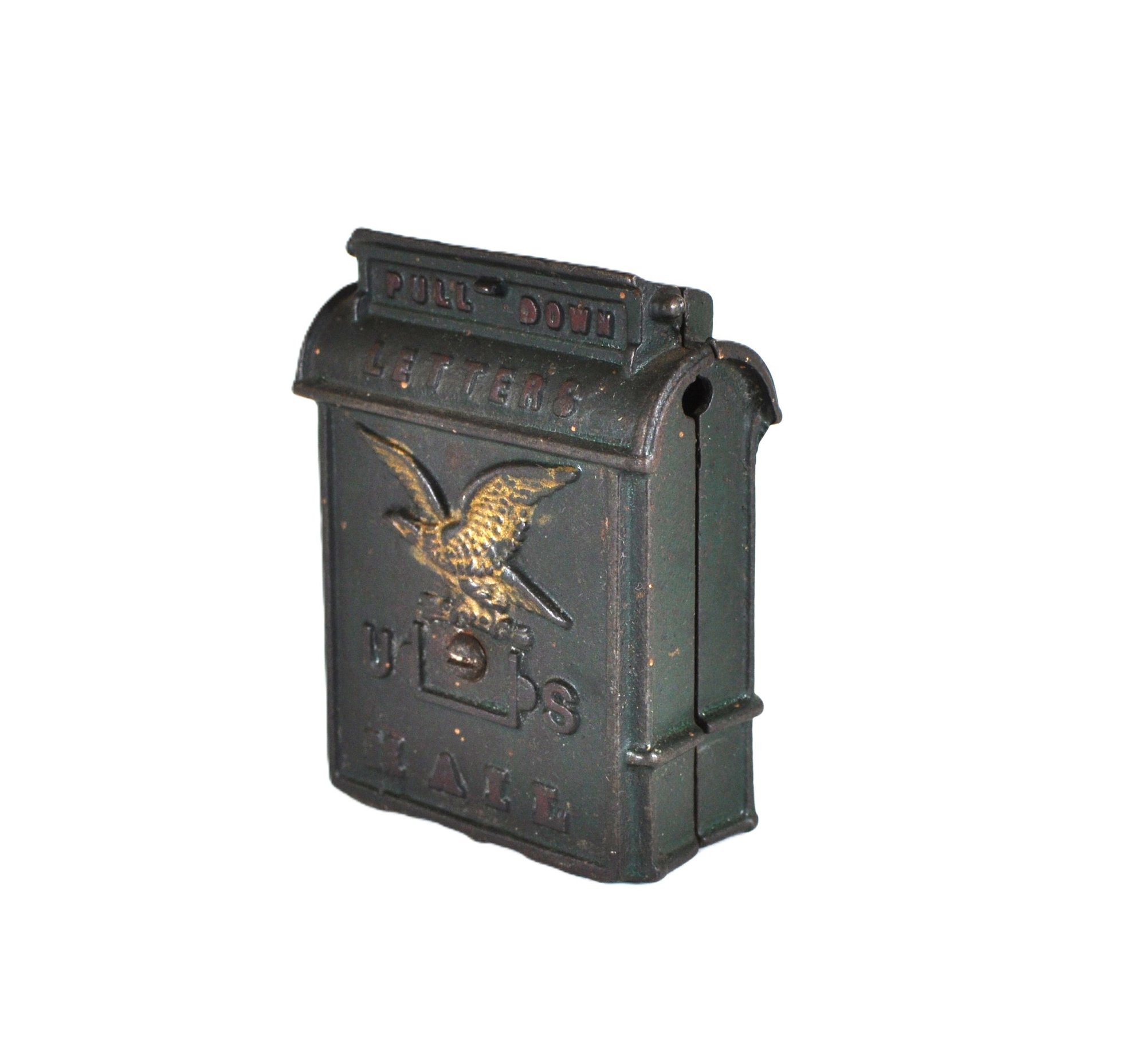 Offered is an antique cast iron still bank in the form of a classic U.S. mail letter drop box,