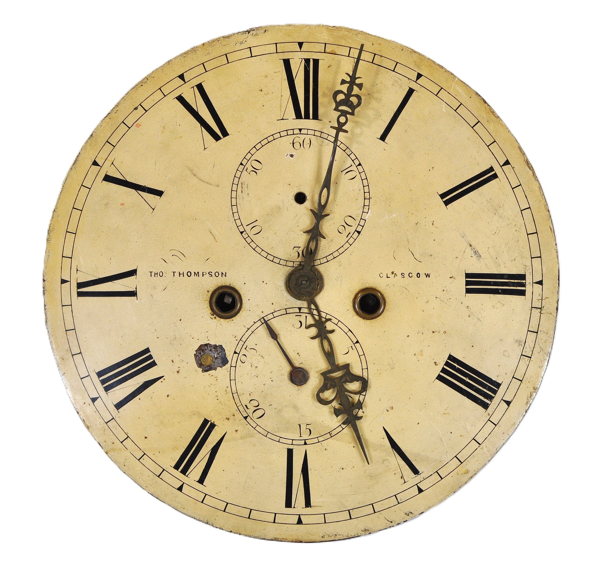 Antique clock dial and movement signed “Thos. Thompson – Glasgow.”