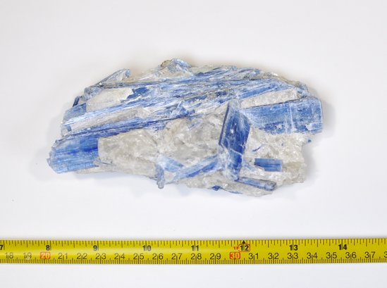 A beautiful example of kyanite on quartz, ready for display