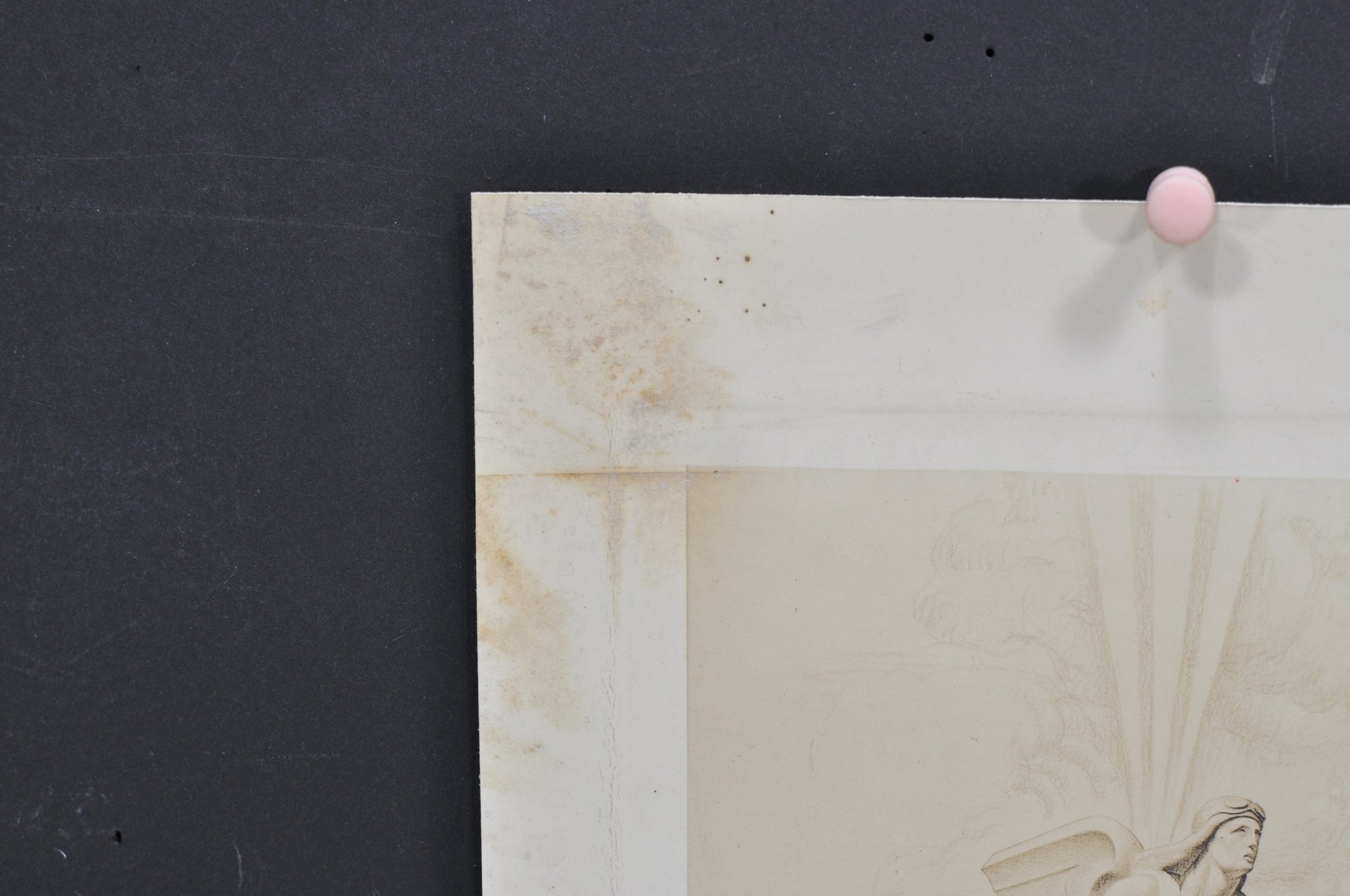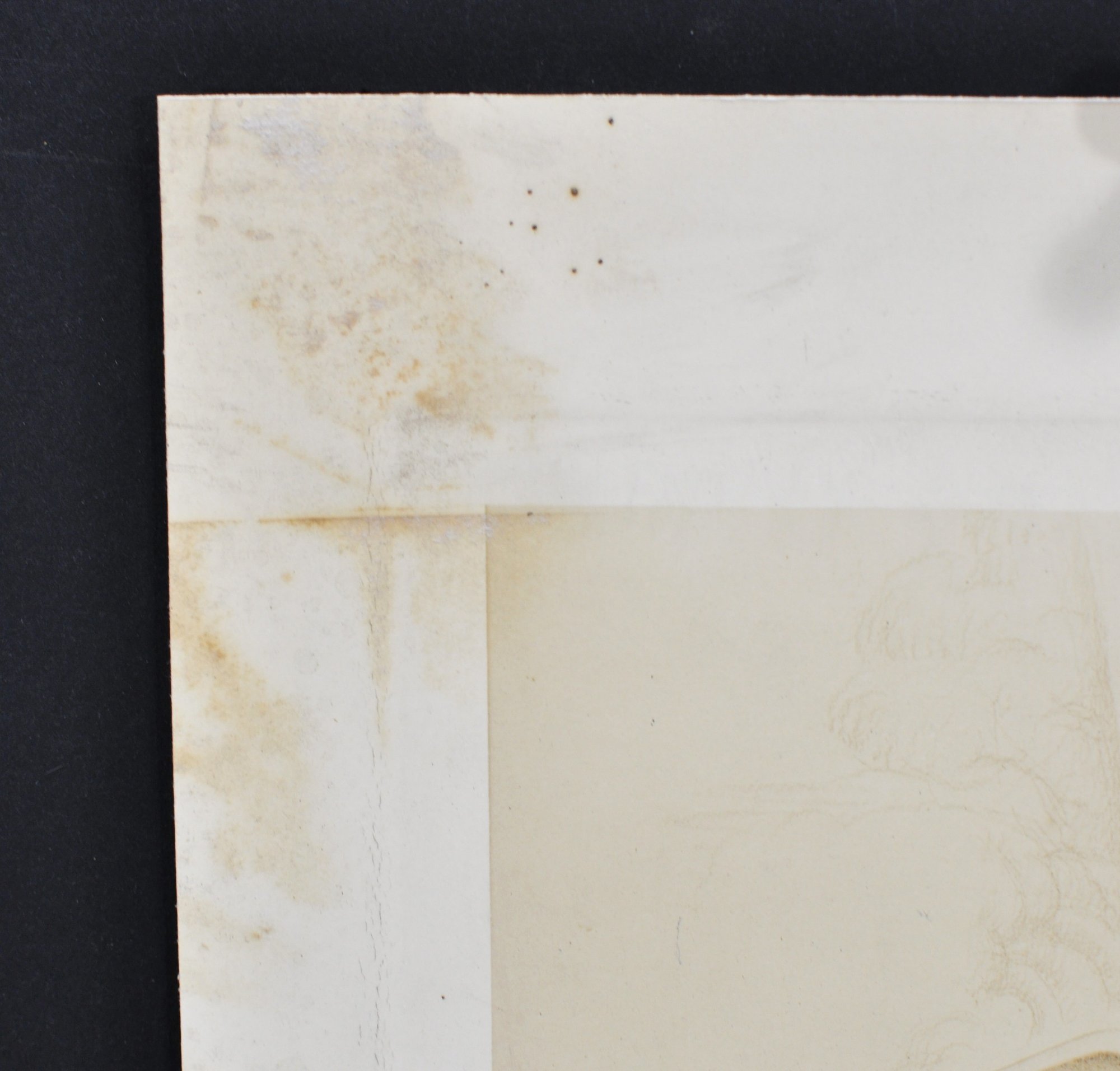 Condition: Noticeable age-related toning, foxing, and staining (especially upper left margin), with handling wear and minor edge wear. Unframed.